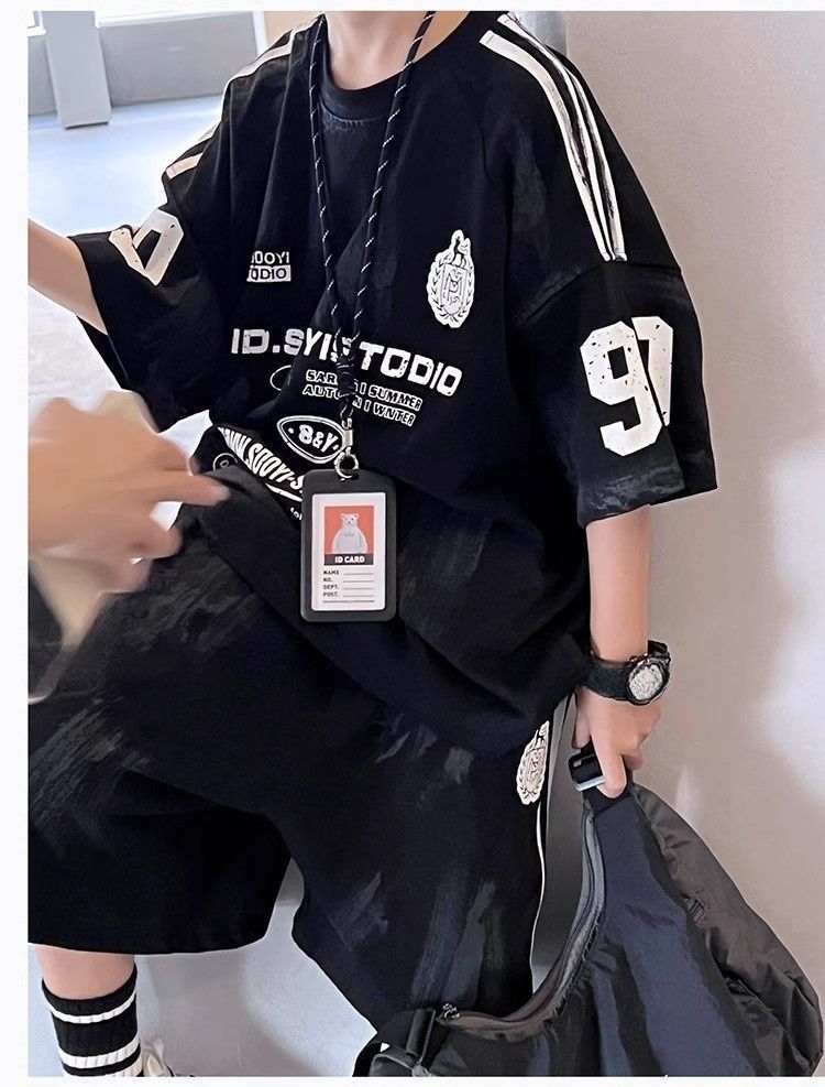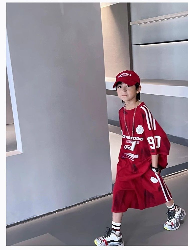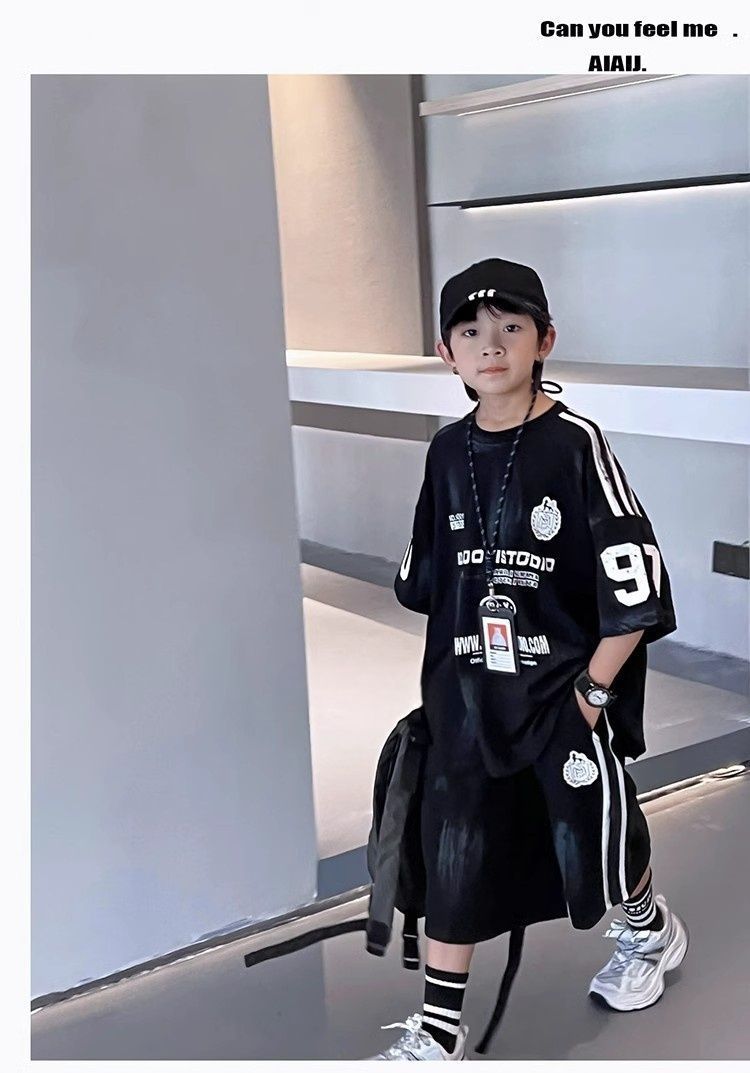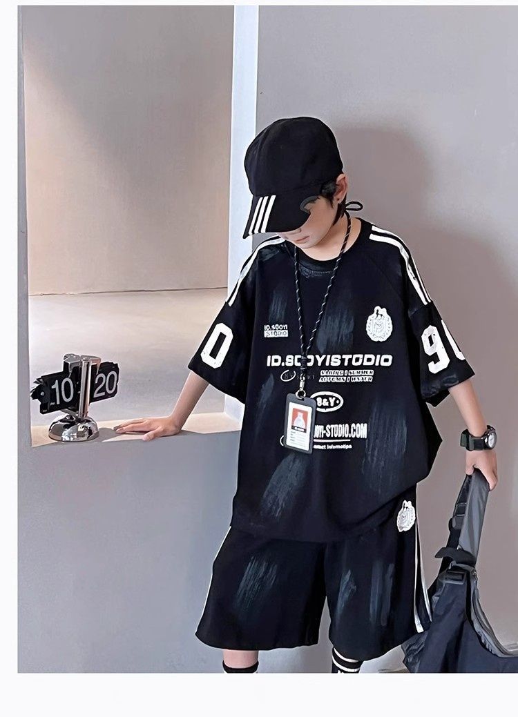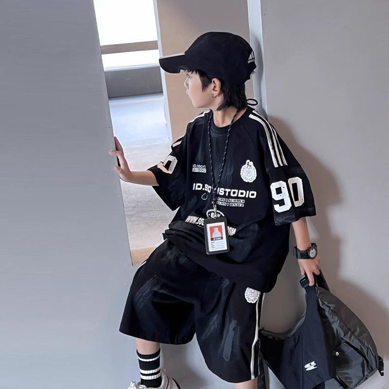 남아용 여름 반팔 양복, 새로운 스타일, 중대형 남아용 반바지, 멋진 아동용 여름 옷, 남아용 투피스 세트, 트렌디함스토어 가기