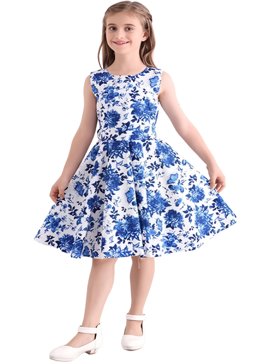 3-14세 소녀 유럽과 미국의 복고풍 로얄 민소매 드레스 생일 파티 공연 Amazon TikTok Hot