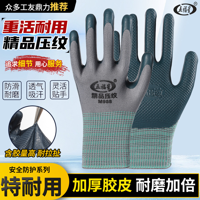 [정품 12쌍 고급 엠보싱] 노동 보호 장갑은 내마모성, 두껍고 편안하며 통기성이 있으며 회사 특수 미끄럼 방지 고무 처리되어 있습니다.