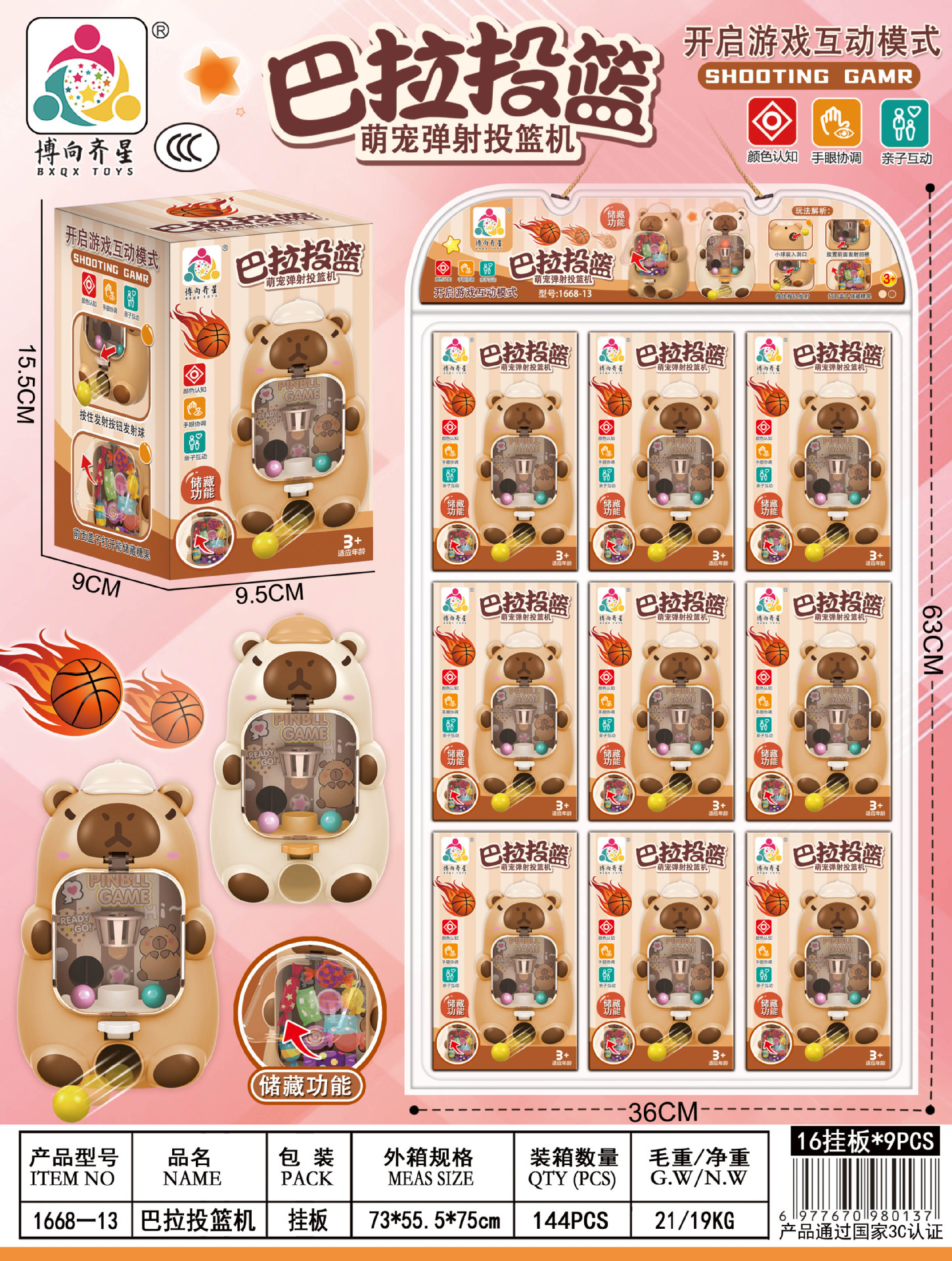 • 1668-13 카피바라 슈팅 게임기 - 1판 = 9개입 (9개 단위로 주문해주세요)