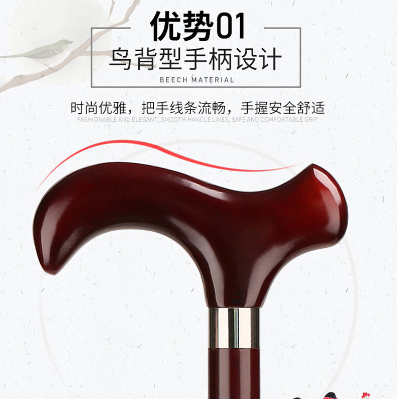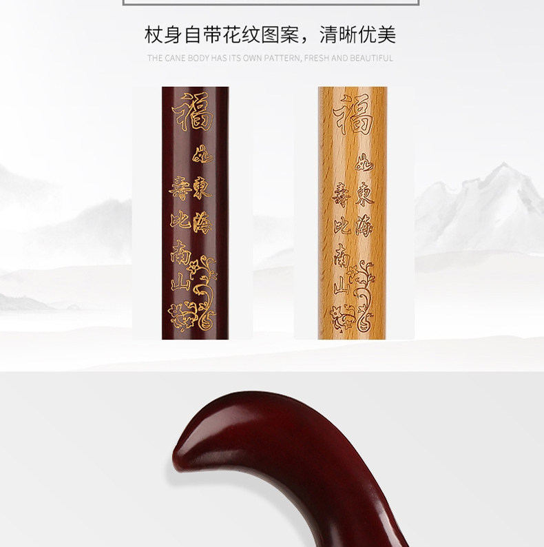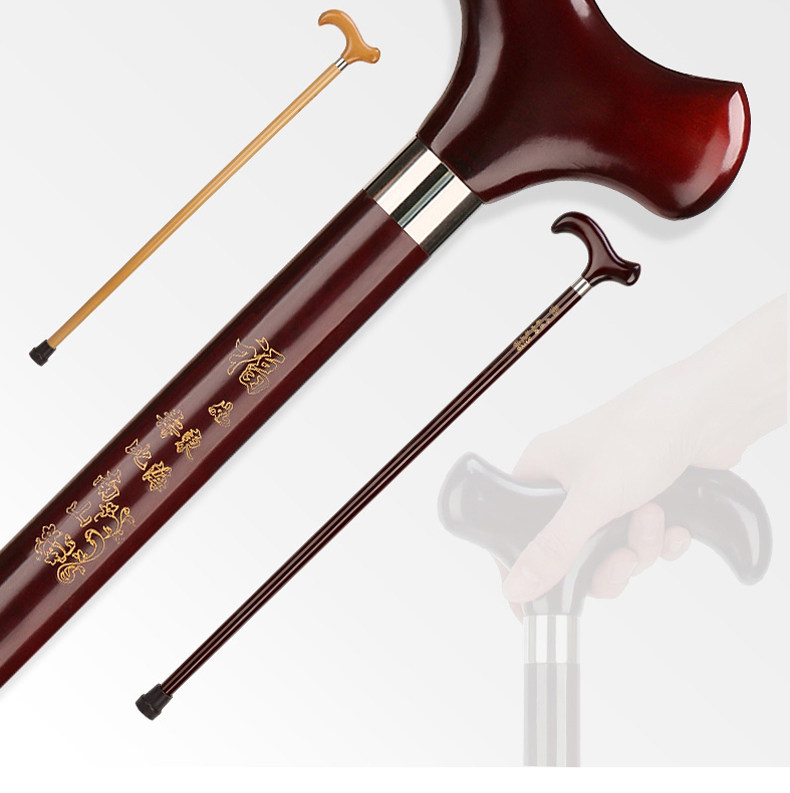 노인을 위한 마호가니 조각 지팡이, 생일 선물을 위한 단단한 나무 지팡이, 노인을 위한 미끄럼 방지 수도꼭지 지팡이, 새겨진 지팡이