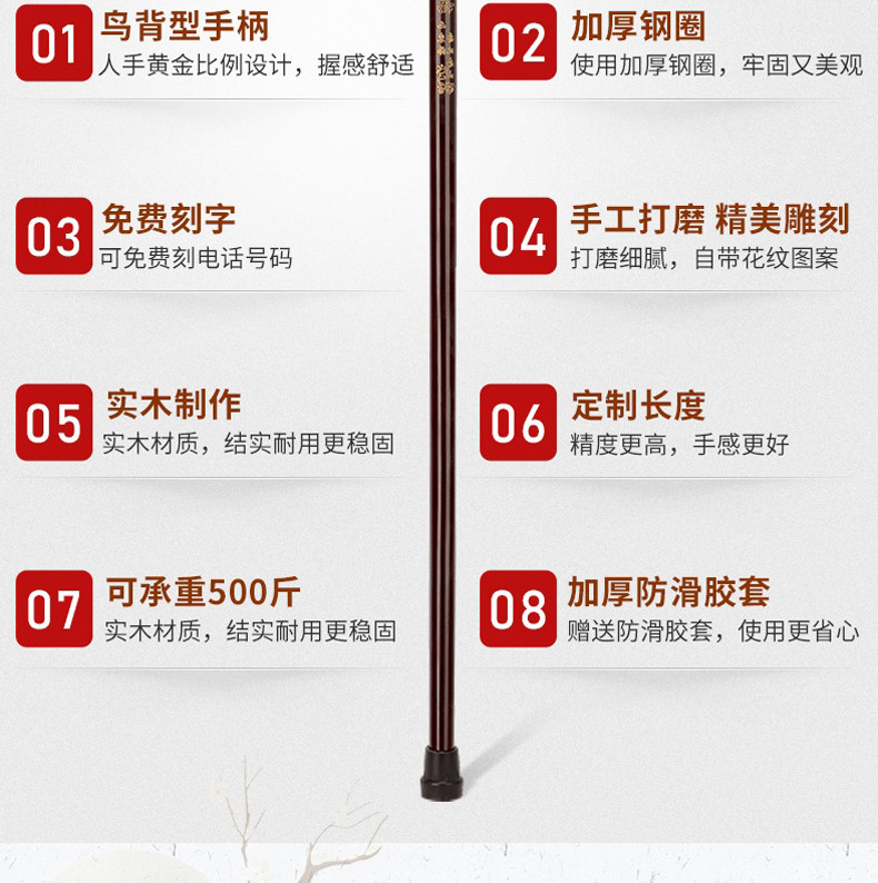 노인을 위한 마호가니 조각 지팡이, 생일 선물을 위한 단단한 나무 지팡이, 노인을 위한 미끄럼 방지 수도꼭지 지팡이, 새겨진 지팡이스토어 가기