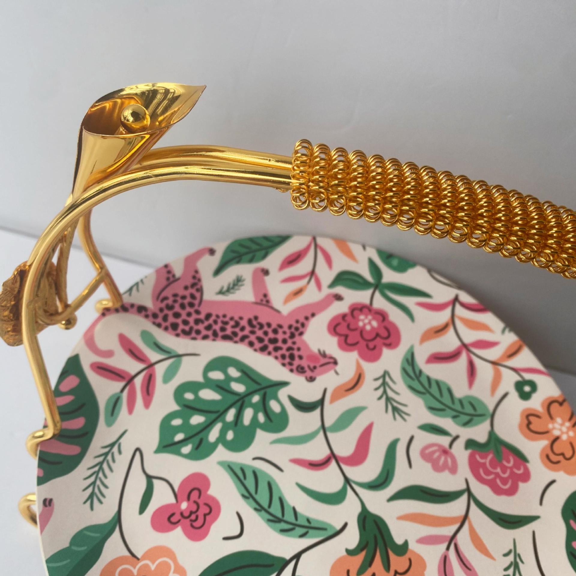 아무르 참나무로 만든 높은 과일 접시, 스낵 접시, 칼라 릴리 손잡이 과일 바구니, 유럽식 과일 접시, 페이스트리 접시