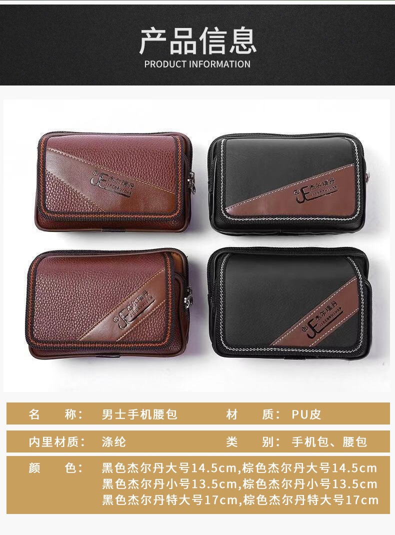 새로운 남성용 허리 가방, 벨트, 휴대폰 허리 가방, 가로 PU 가죽 다기능 카드 홀더, 동전 지갑, 공장 도매스토어 가기