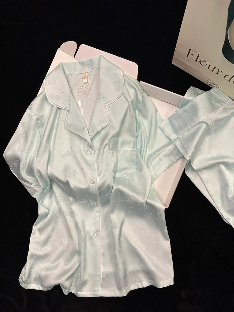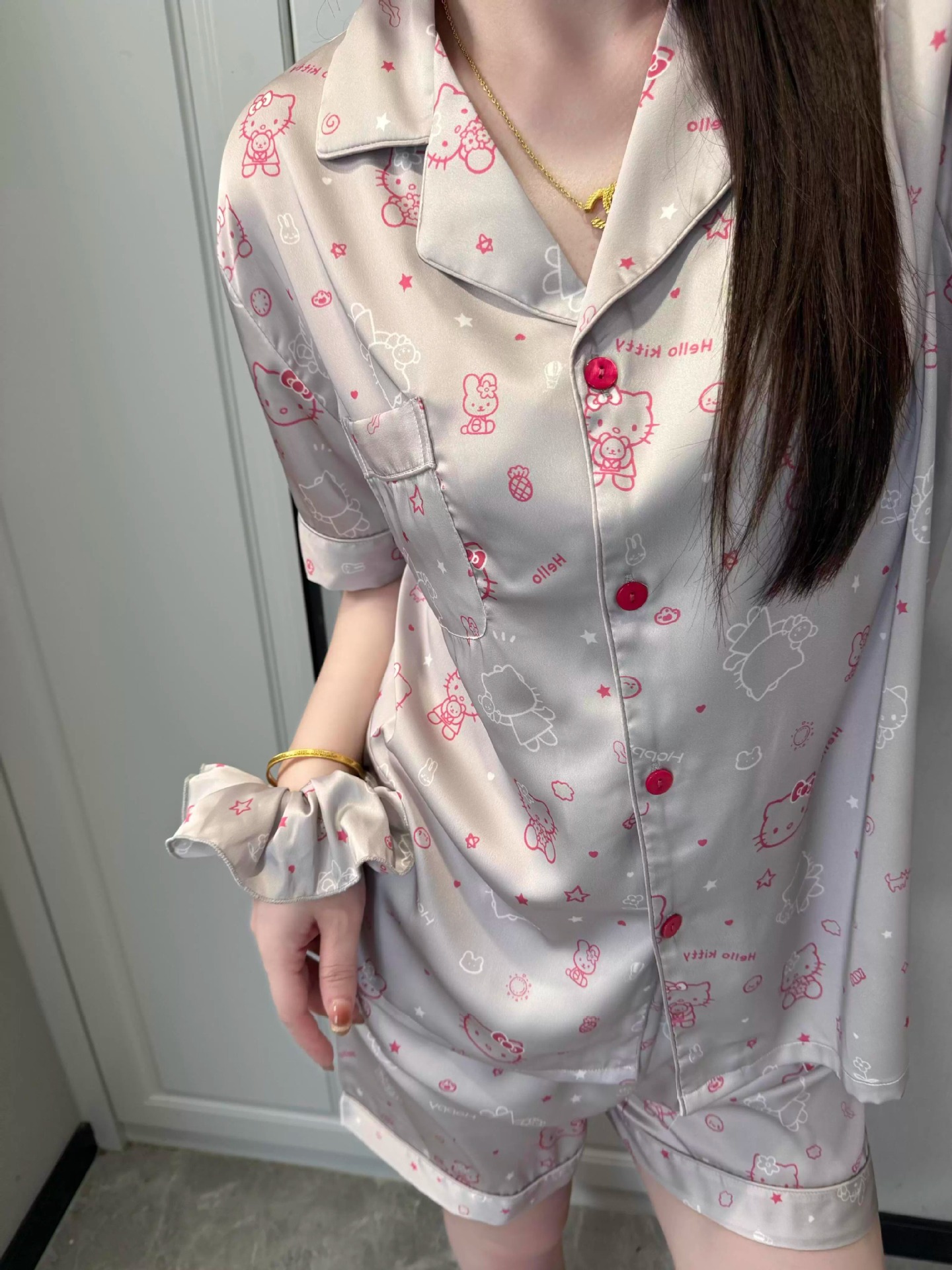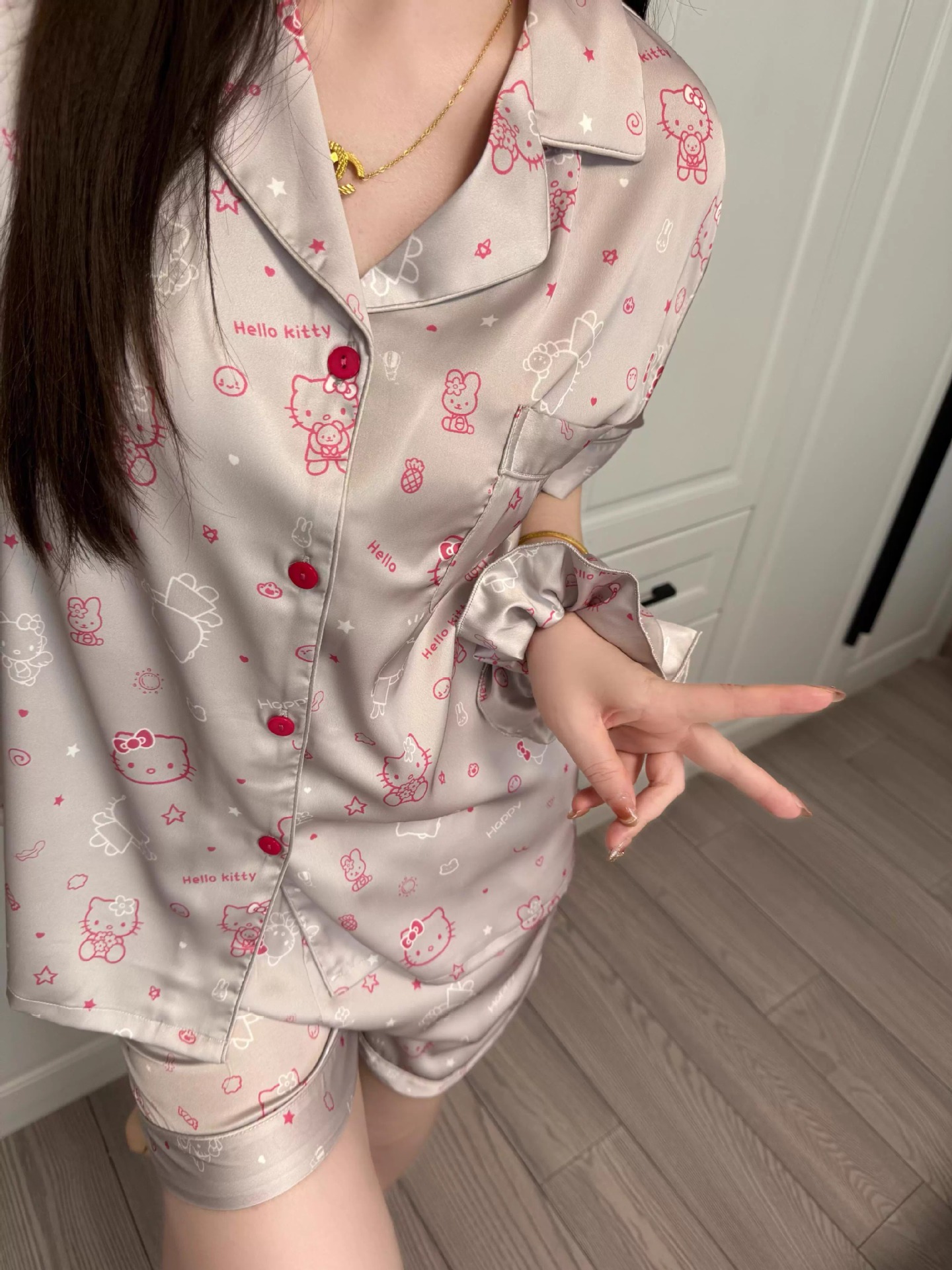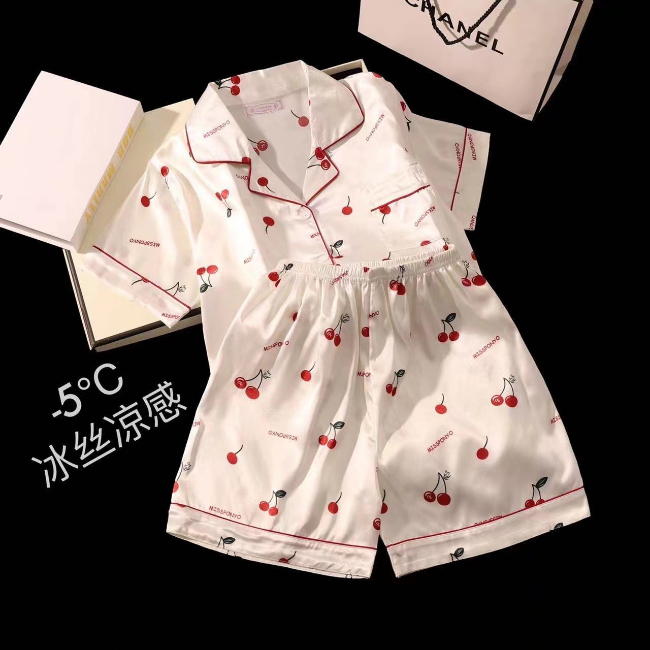 여성용 여름 잠옷 2025년형 아이스 실크 반바지 인스타그램 스타일 반팔 반바지 작은 카라 신상 홈웨어 도매