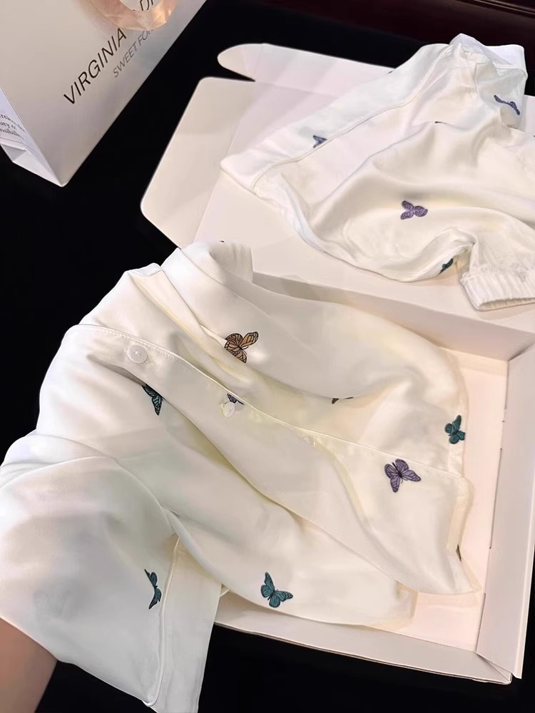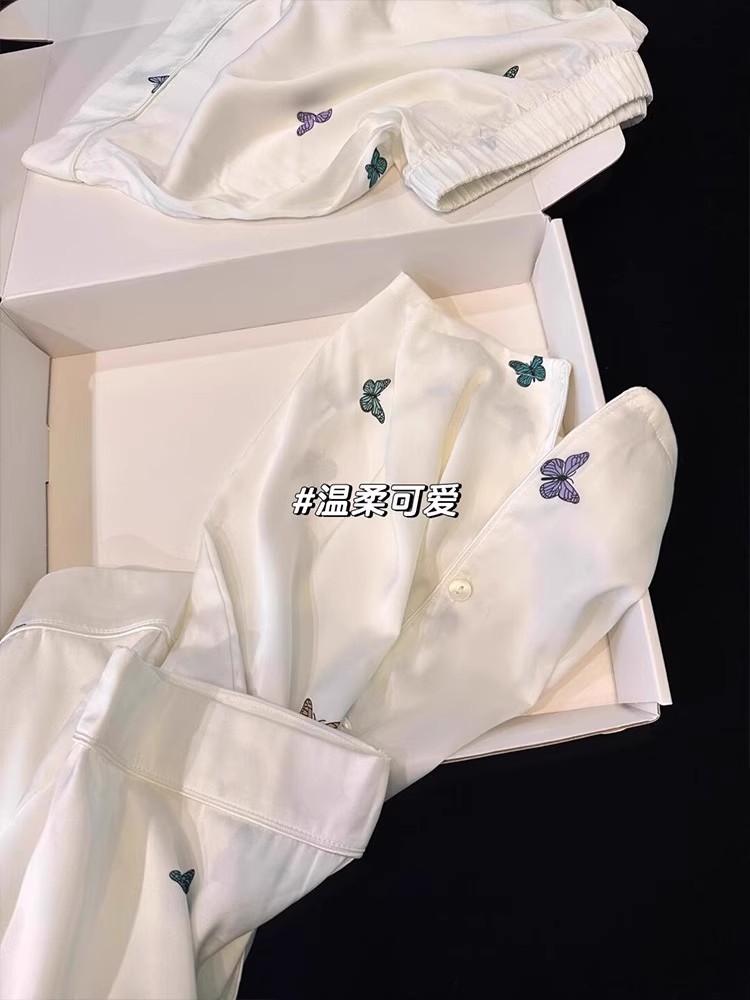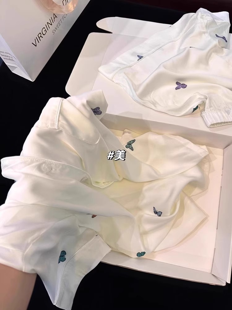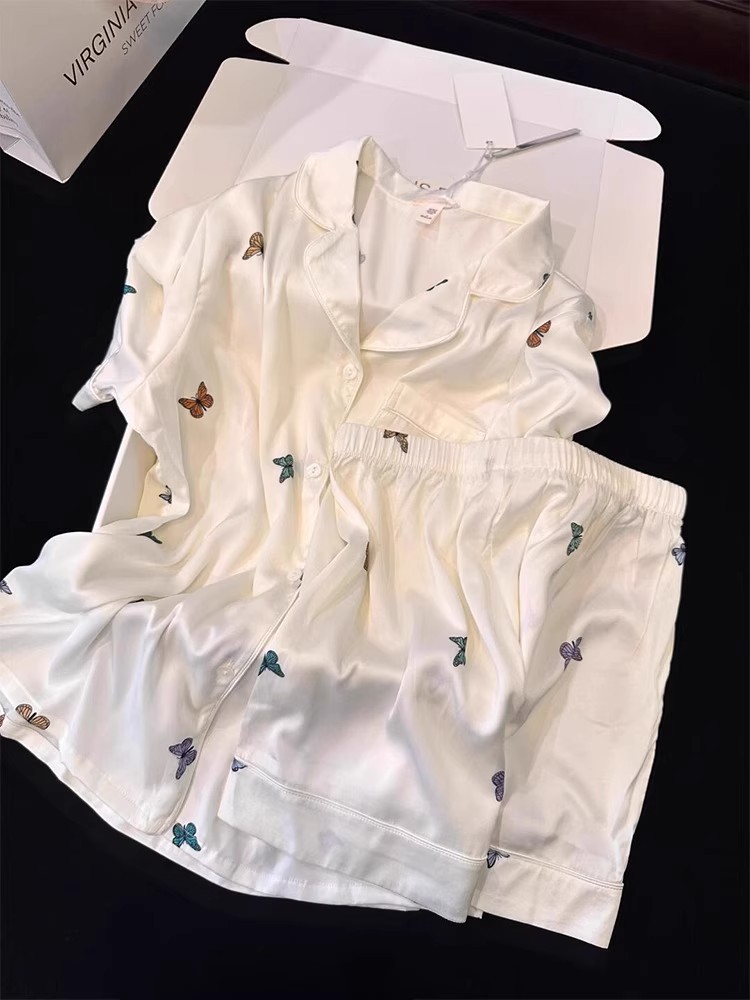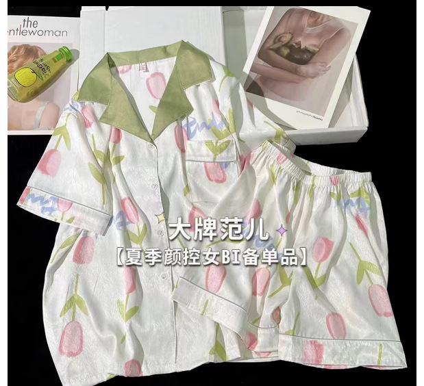 여성용 여름 잠옷 2025년형 아이스 실크 반바지 인스타그램 스타일 반팔 반바지 작은 카라 신상 홈웨어 도매스토어 가기