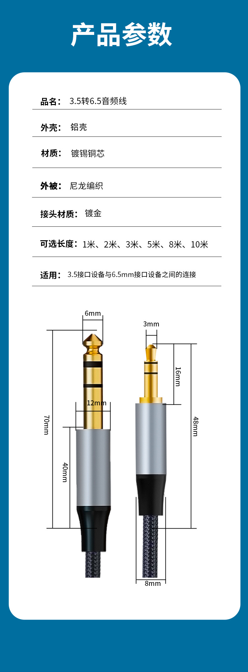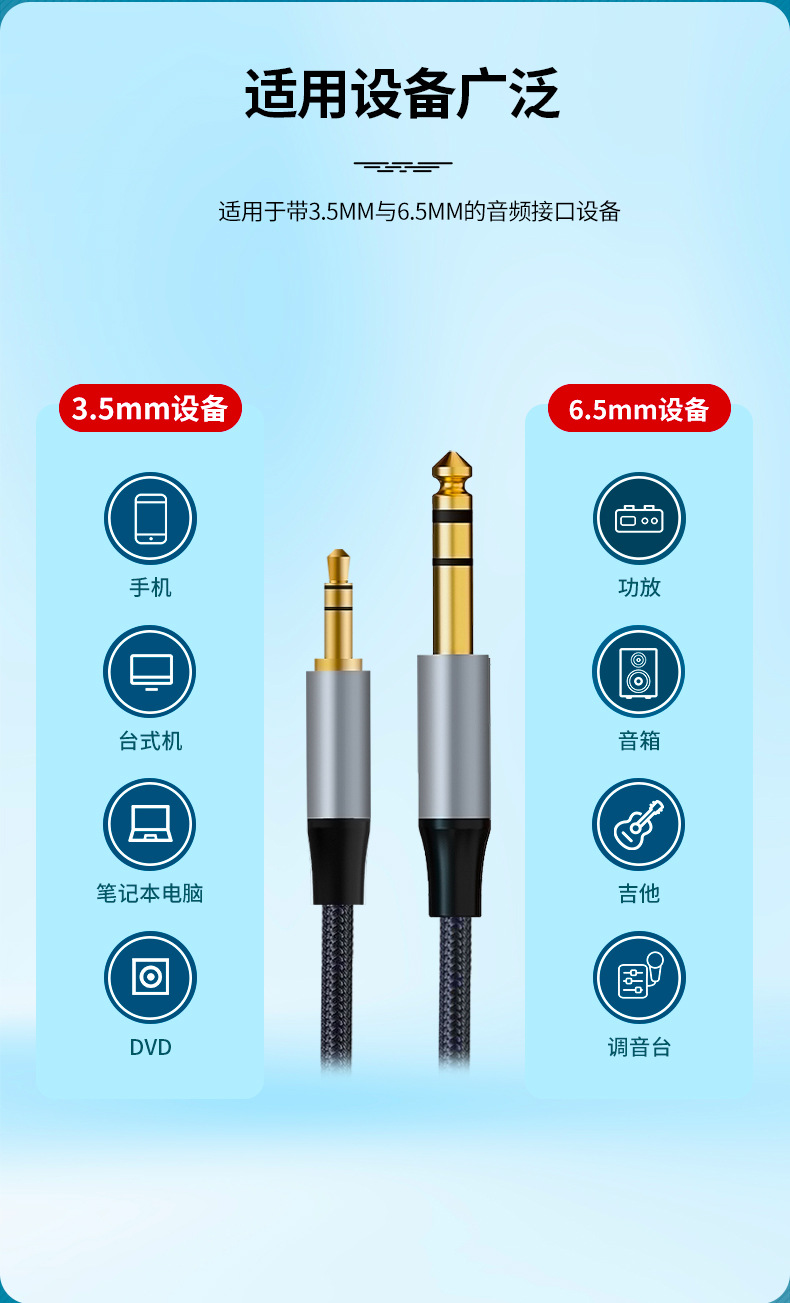 3.5mm에서 6.5mm로 변환하는 오디오 케이블, 휴대폰, 컴퓨터, 앰프, 믹서, 노트북, 6.35mm 기타 연결 케이블