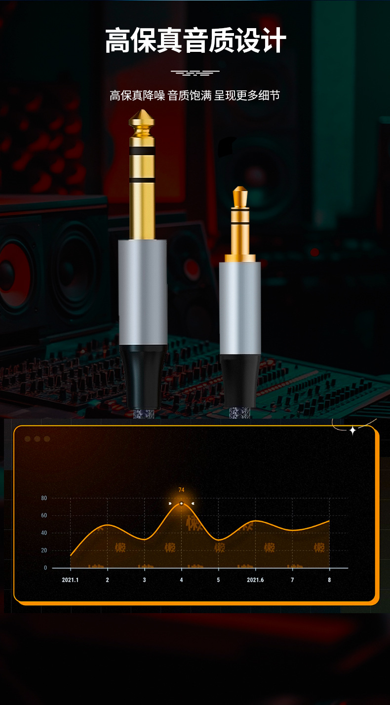 3.5mm에서 6.5mm로 변환하는 오디오 케이블, 휴대폰, 컴퓨터, 앰프, 믹서, 노트북, 6.35mm 기타 연결 케이블스토어 가기