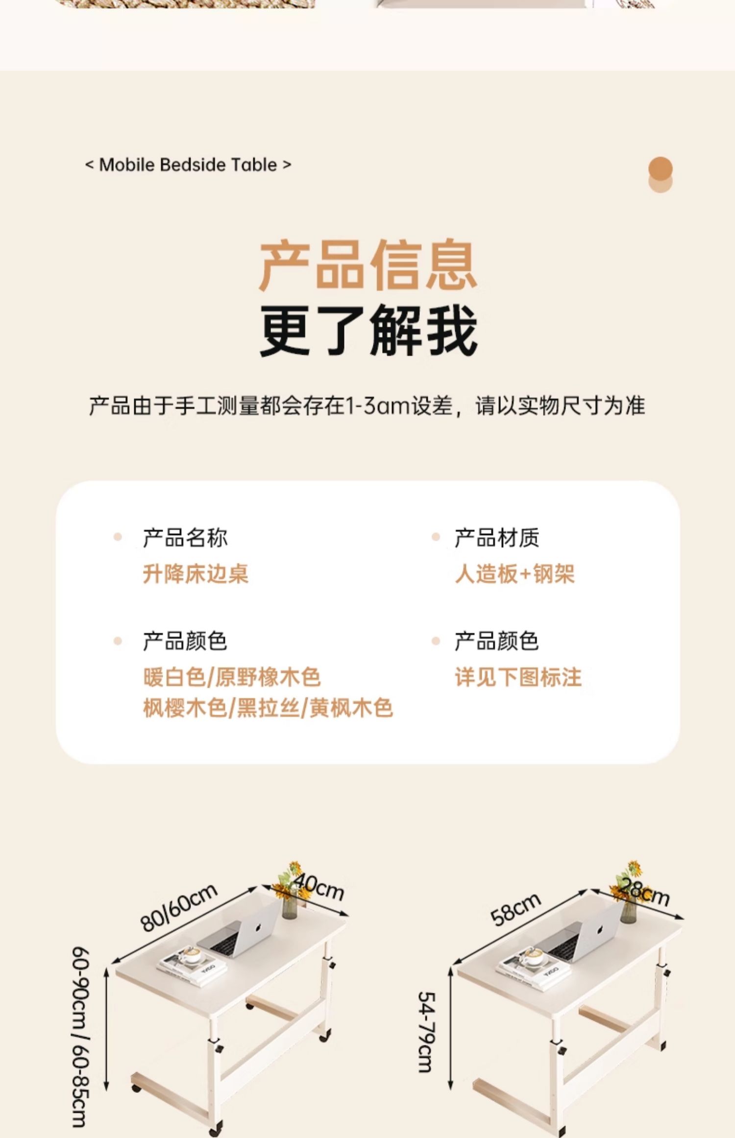 침대 옆 테이블, 이동식 리프팅 컴퓨터 테이블, 침대 옆 테이블, 거실 소파 사이드 테이블, 침실 홈 침대 학습 책스토어 가기