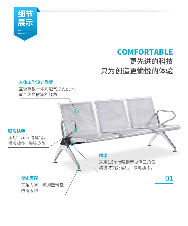 연속 의자, 공항 의자, 강화 및 두꺼운 스테인레스 스틸 3인용 병원 긴 의자, 대기 의자, 연속 주입 의자, 대기 의자스토어 가기