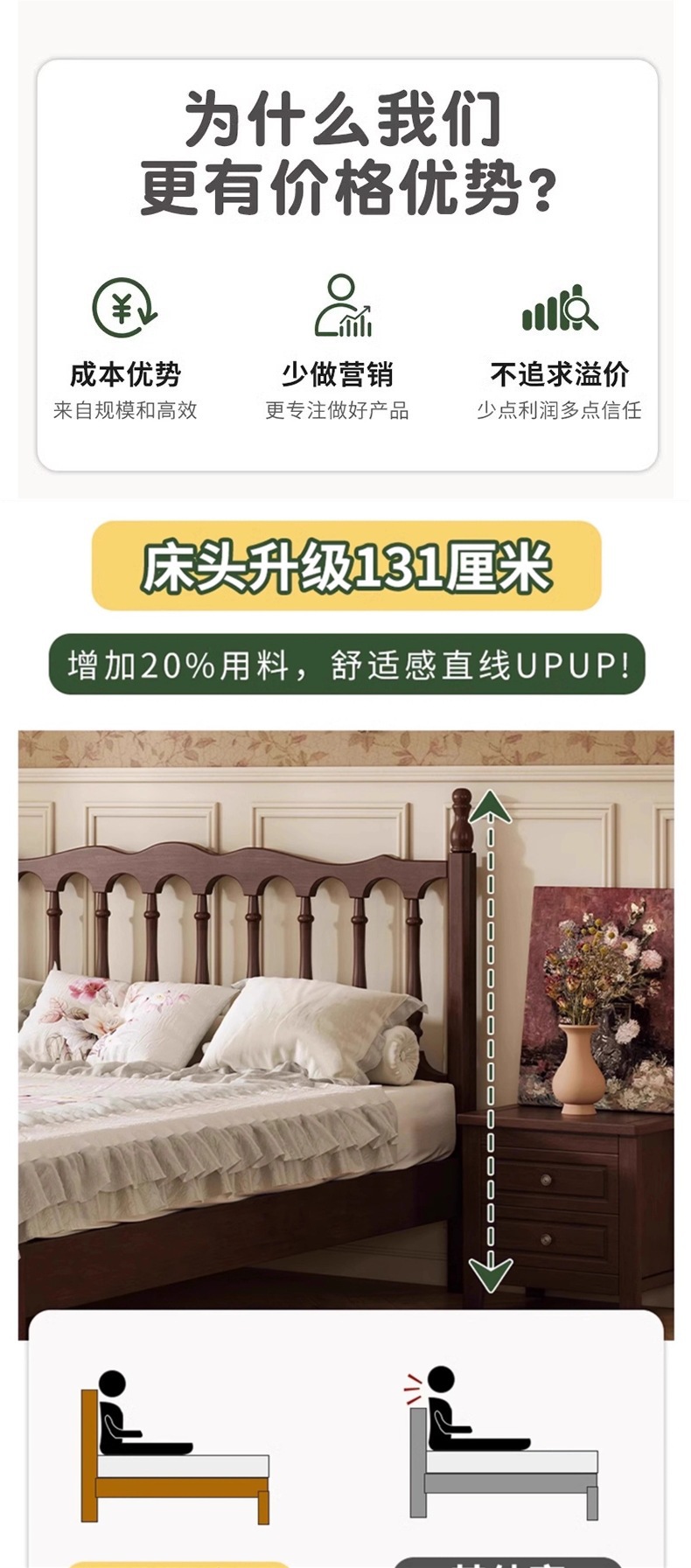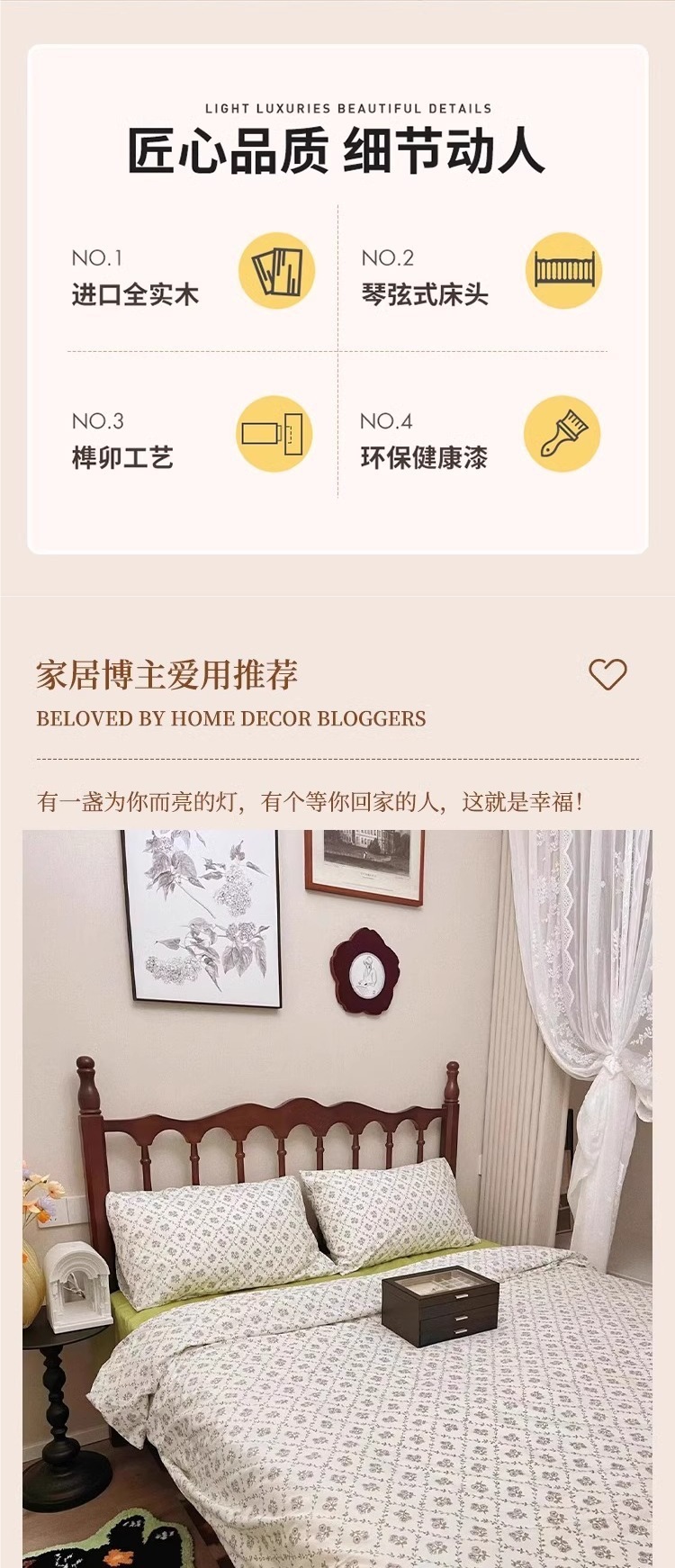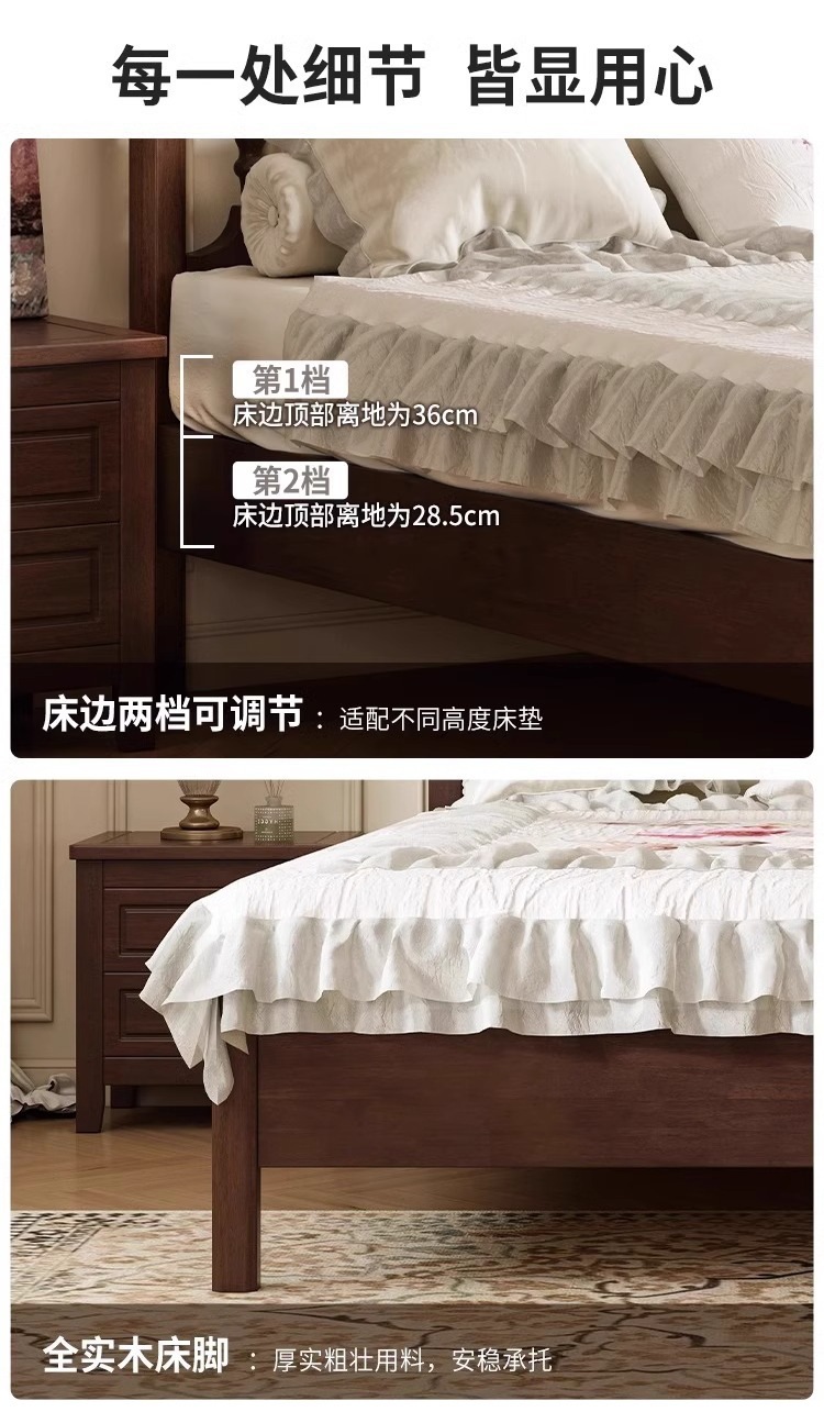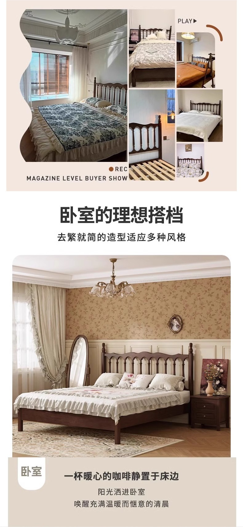 미국 컨트리 스타일 원목 침대 1.5m 모던 심플 레트로 프렌치 1.8m 더블 침대 홈스테이 내구성 윈저 침대스토어 가기
