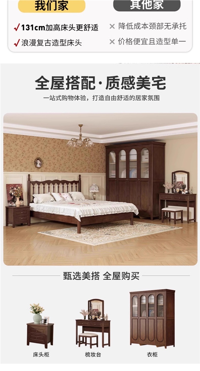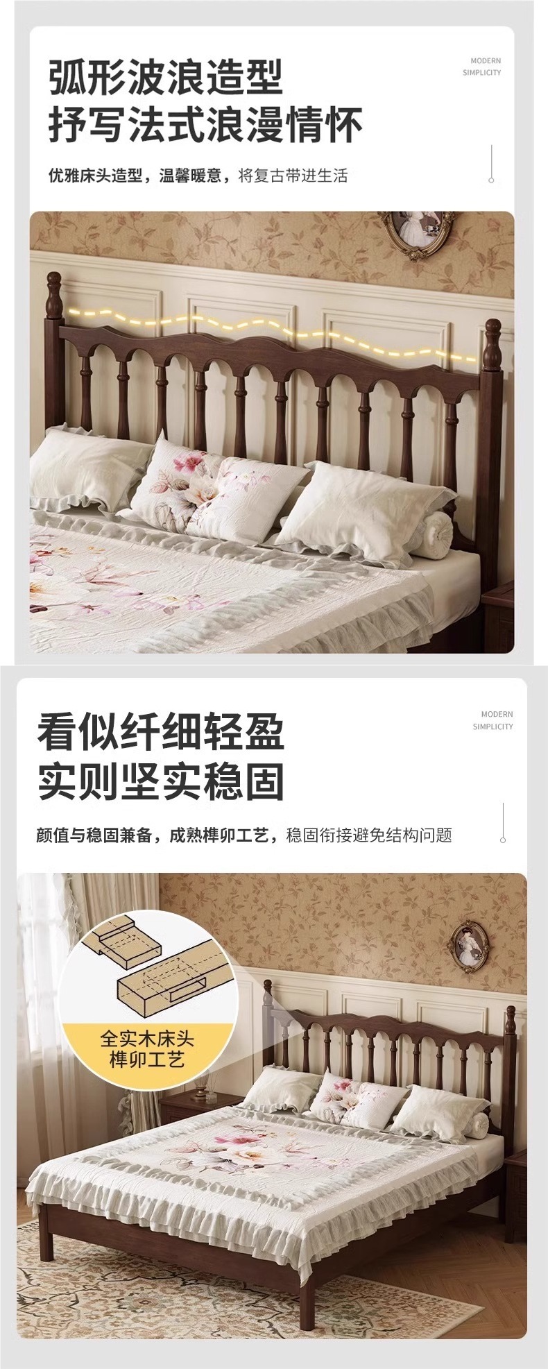 미국 컨트리 스타일 원목 침대 1.5m 모던 심플 레트로 프렌치 1.8m 더블 침대 홈스테이 내구성 윈저 침대