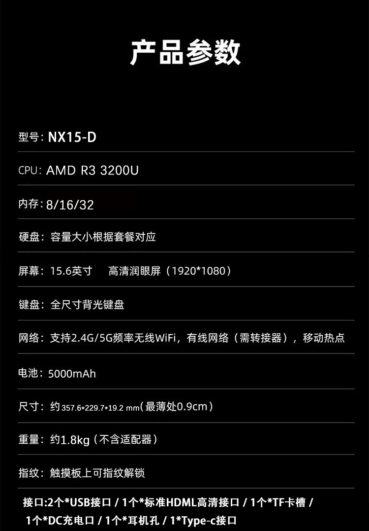 새로운 15.6inch 노트북 Ryzen R3200U 플래그십 고성능 비즈니스 게임 휴대용 얇고 가벼운 노트북
