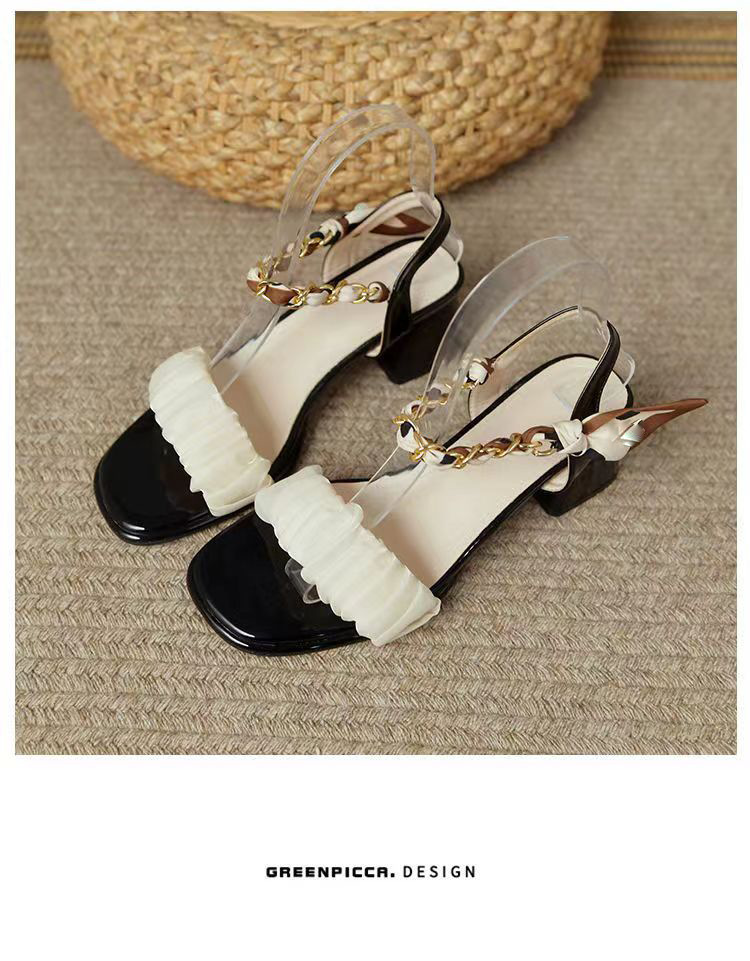 여성용 페어리 스타일 원라인 두꺼운 굽 미드힐 샌들 2025 여름 신작 여성화 다재다능하고 패셔너블한 하이힐 트렌드