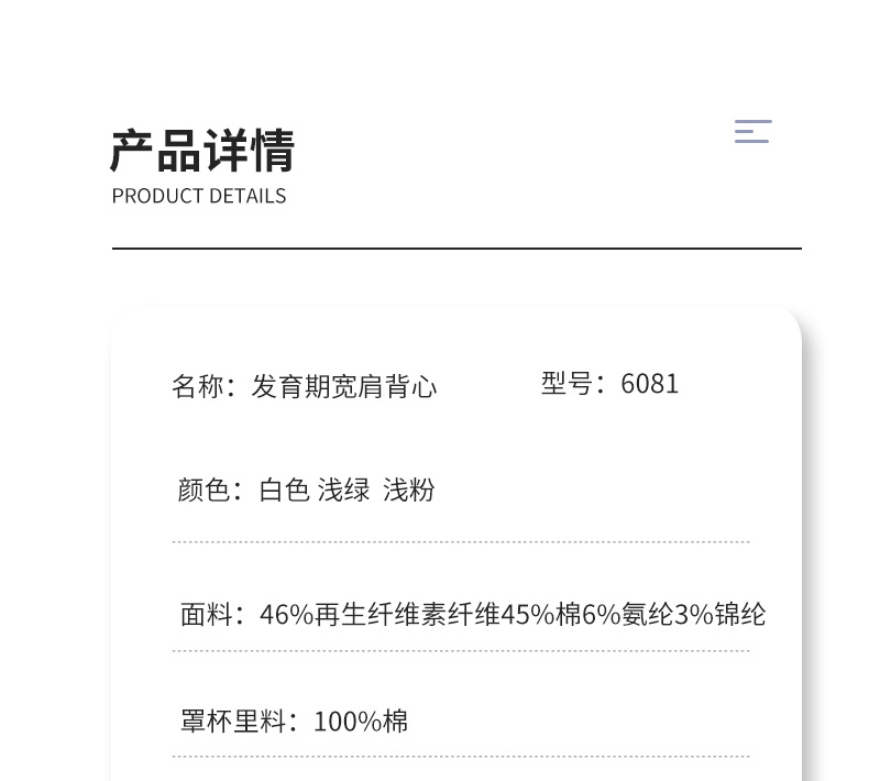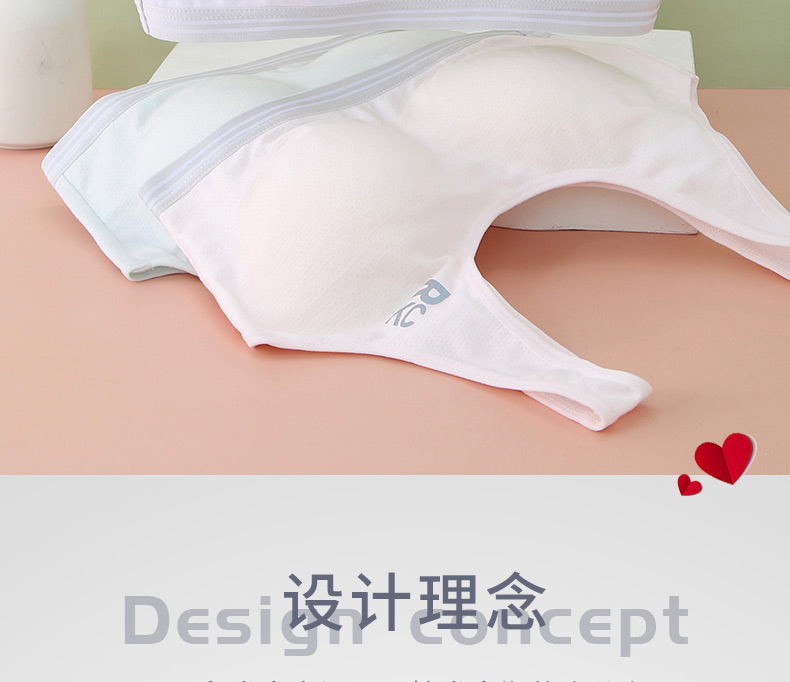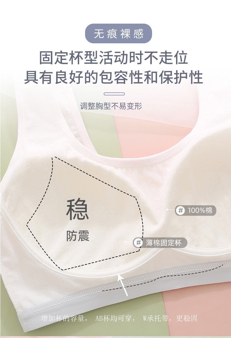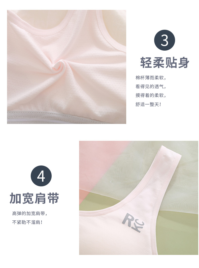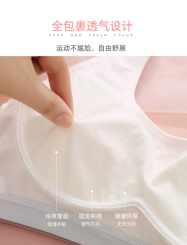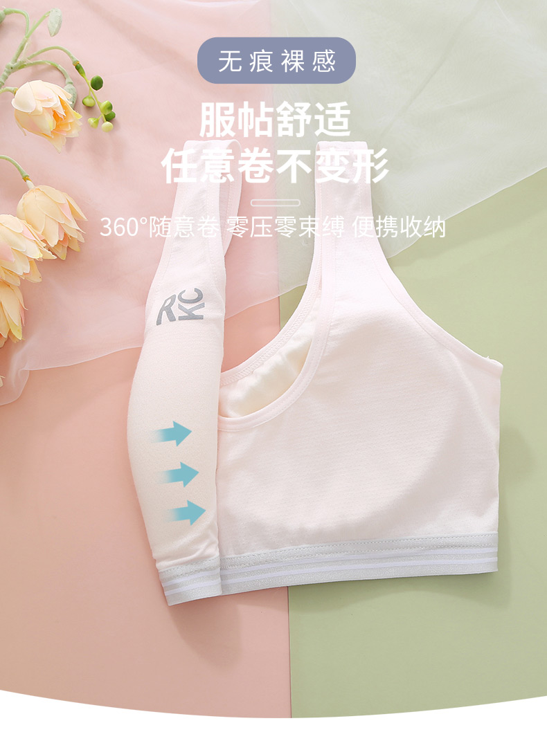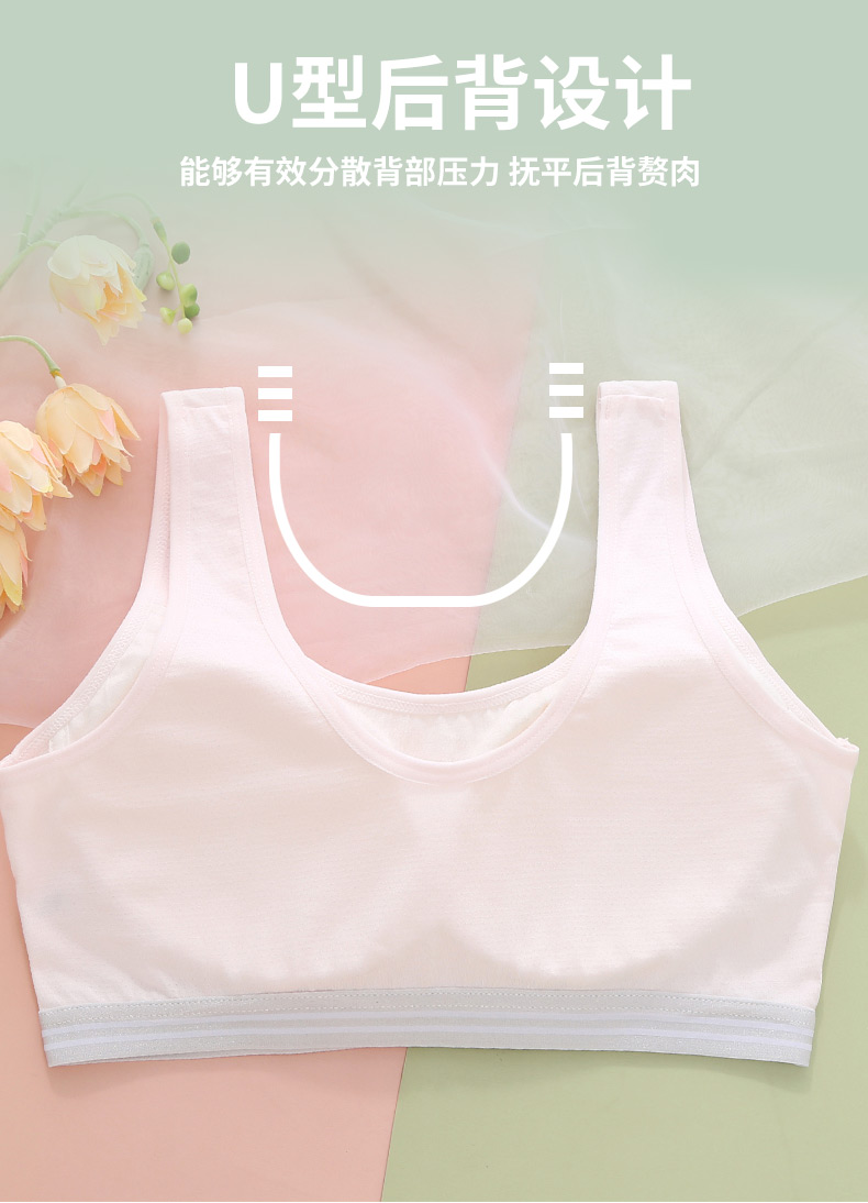 여아 브라, 스포츠 브라, 여아 흰색 조끼 스타일, 중학생, 고등학생, 여아 발달기, 얇은 여름