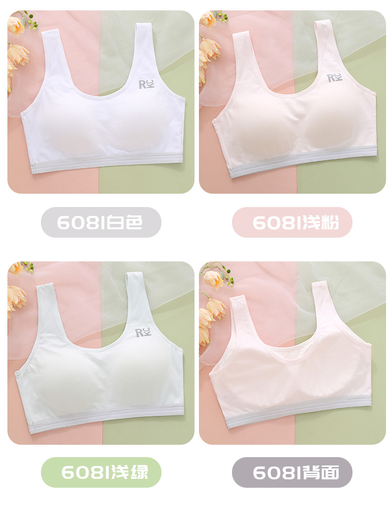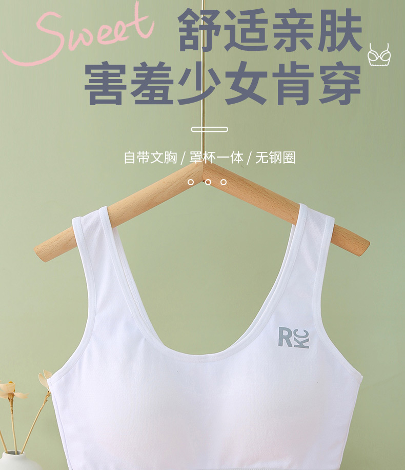 여아 브라, 스포츠 브라, 여아 흰색 조끼 스타일, 중학생, 고등학생, 여아 발달기, 얇은 여름스토어 가기