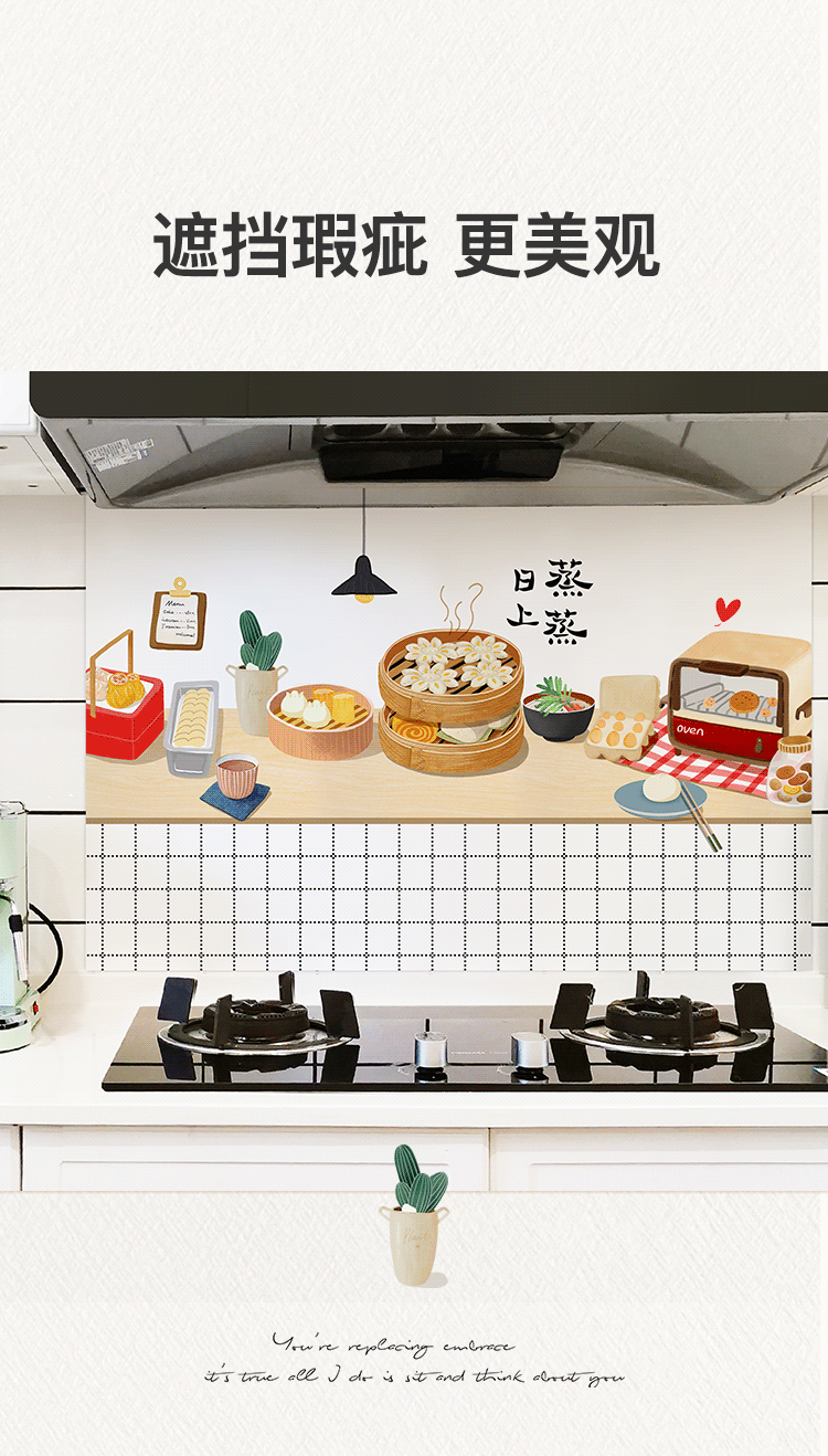 ▧ 주방용 기름 방지 스티커, 내화 및 고온 저항, 자가 접착 방수 벽지, 레인지 후드 가정용 벽 장식 스티커스토어 가기
