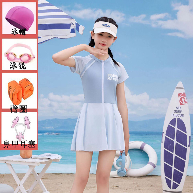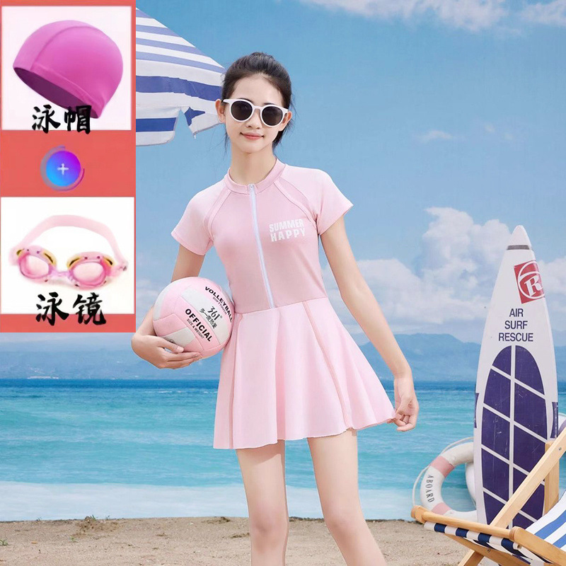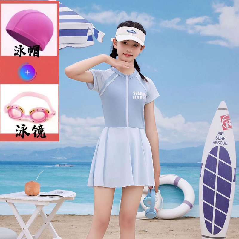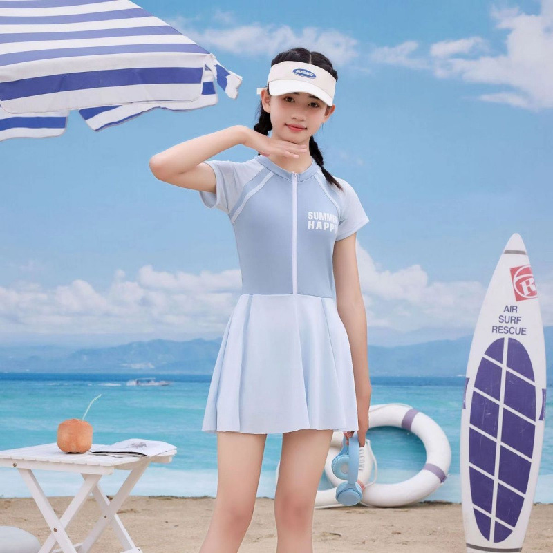 여성용 중대형 아동 수영복 2025 새로운 청소년 원피스 드레스 속건성 소녀 전문 훈련 수영복 슈트스토어 가기
