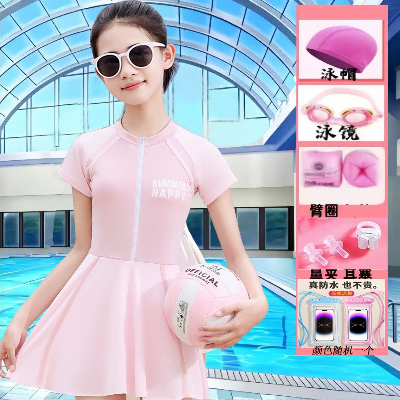 여성용 중대형 아동 수영복 2025 새로운 청소년 원피스 드레스 속건성 소녀 전문 훈련 수영복 슈트