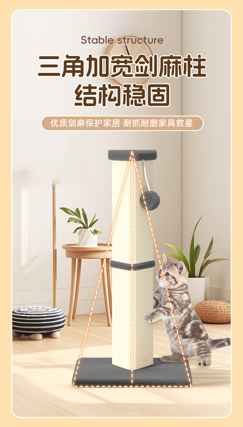 맞춤형 삼각형 로마 기둥 고양이 클라이밍 프레임, 칼라마타 섬유로 제작되어 부스러기 없고 내마모성이 뛰어난 고양이 스크래치 보드, 고양이 장난감, 고양이 클라이밍 기둥