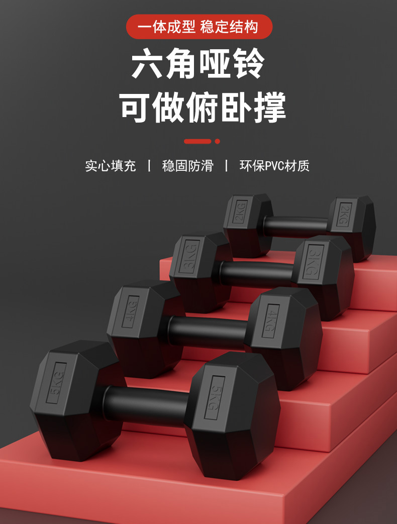 국경 간 배송 소형 고무 덤벨 2/3/4/5kg 학생 남성 홈 피트니스 장비 육각형 덤벨 한 쌍