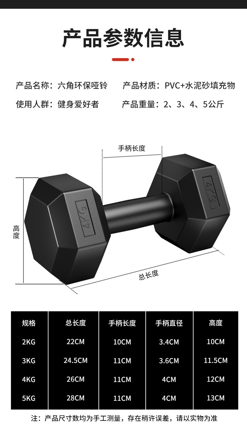 국경 간 배송 소형 고무 덤벨 2/3/4/5kg 학생 남성 홈 피트니스 장비 육각형 덤벨 한 쌍스토어 가기