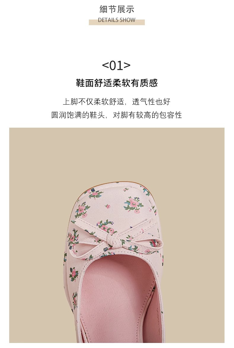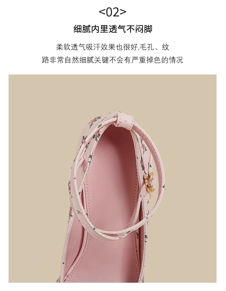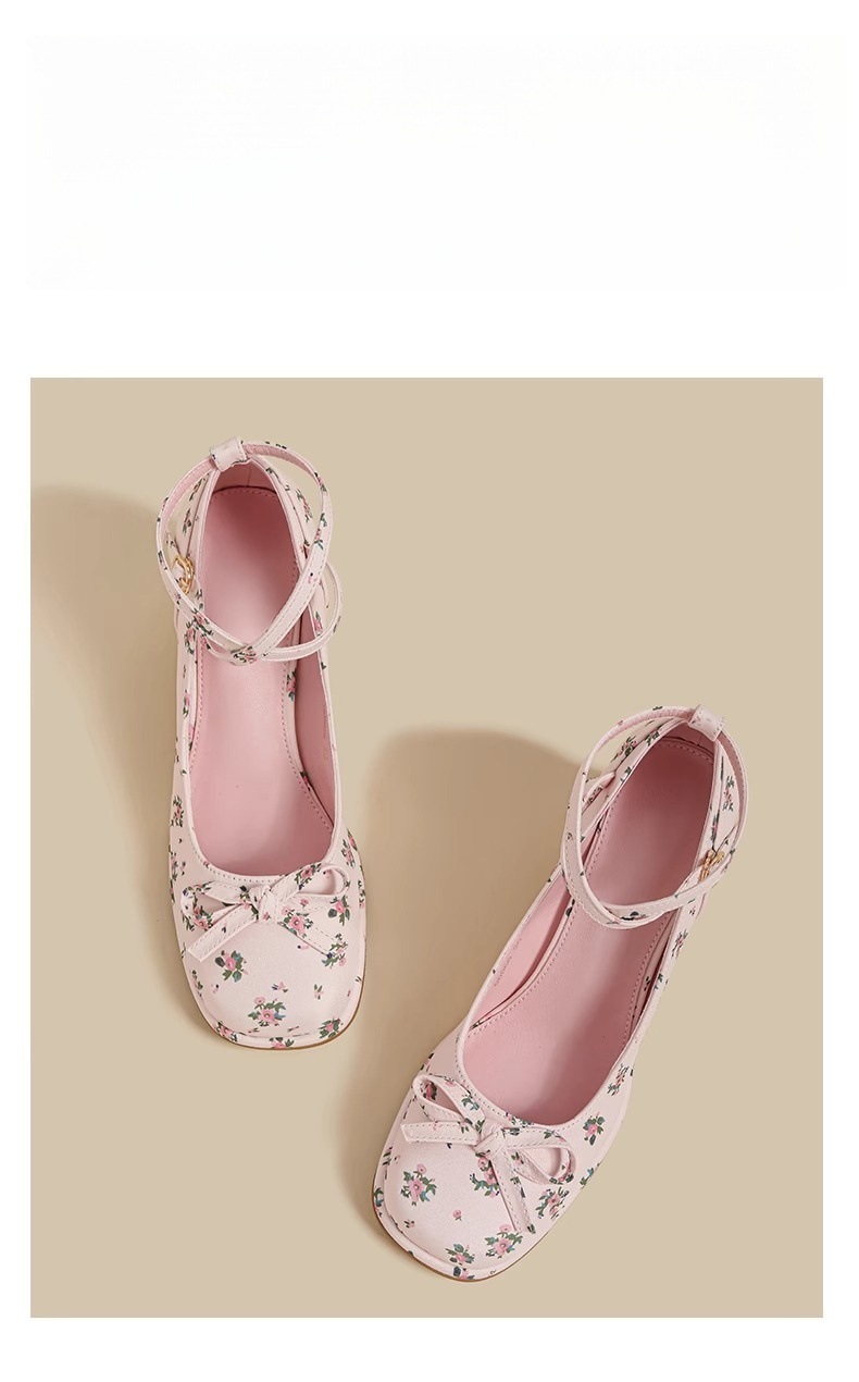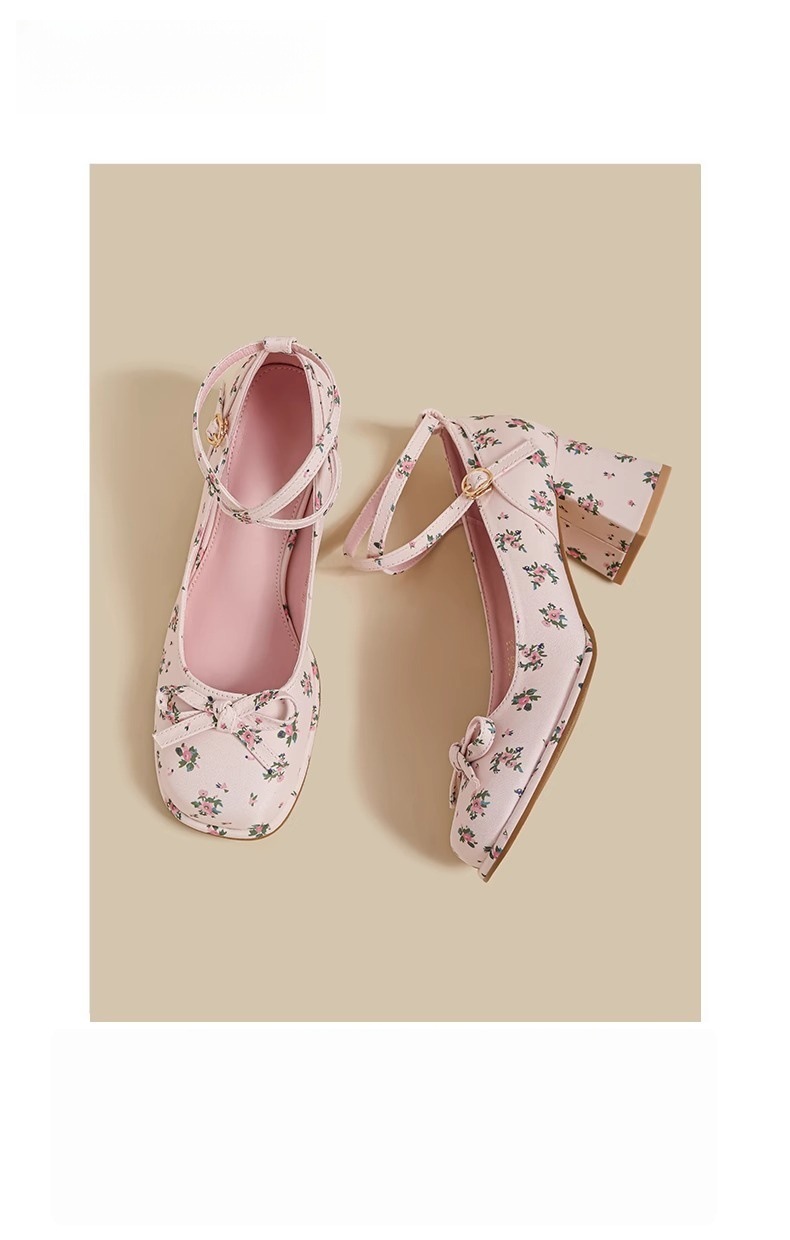 2025년 여름 신상 여성용 프렌치 스타일 펌프스 슈즈, 두꺼운 굽, 크로스 스트랩, 핑크 메리 제인 꽃무늬 작은 가죽 신발스토어 가기
