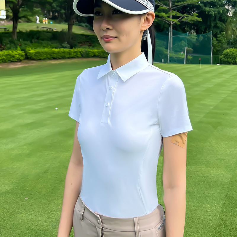 Taogang 골프 여성용 아이스 실크 티셔츠 정장 속건성 스포츠 의류 여성용 흑백 반팔 탑 골프 유니폼