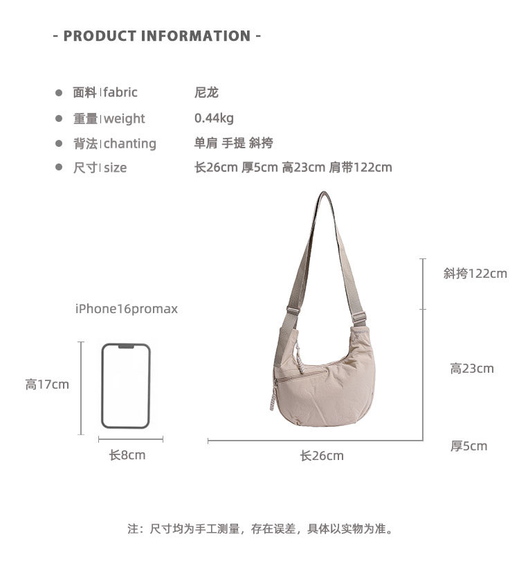 여성을 위한 새로운 대용량 나일론 가방, 캐주얼 일본 및 한국 스포츠 만두 가방, 패셔너블하고 가벼운 인 스타일 크로스백