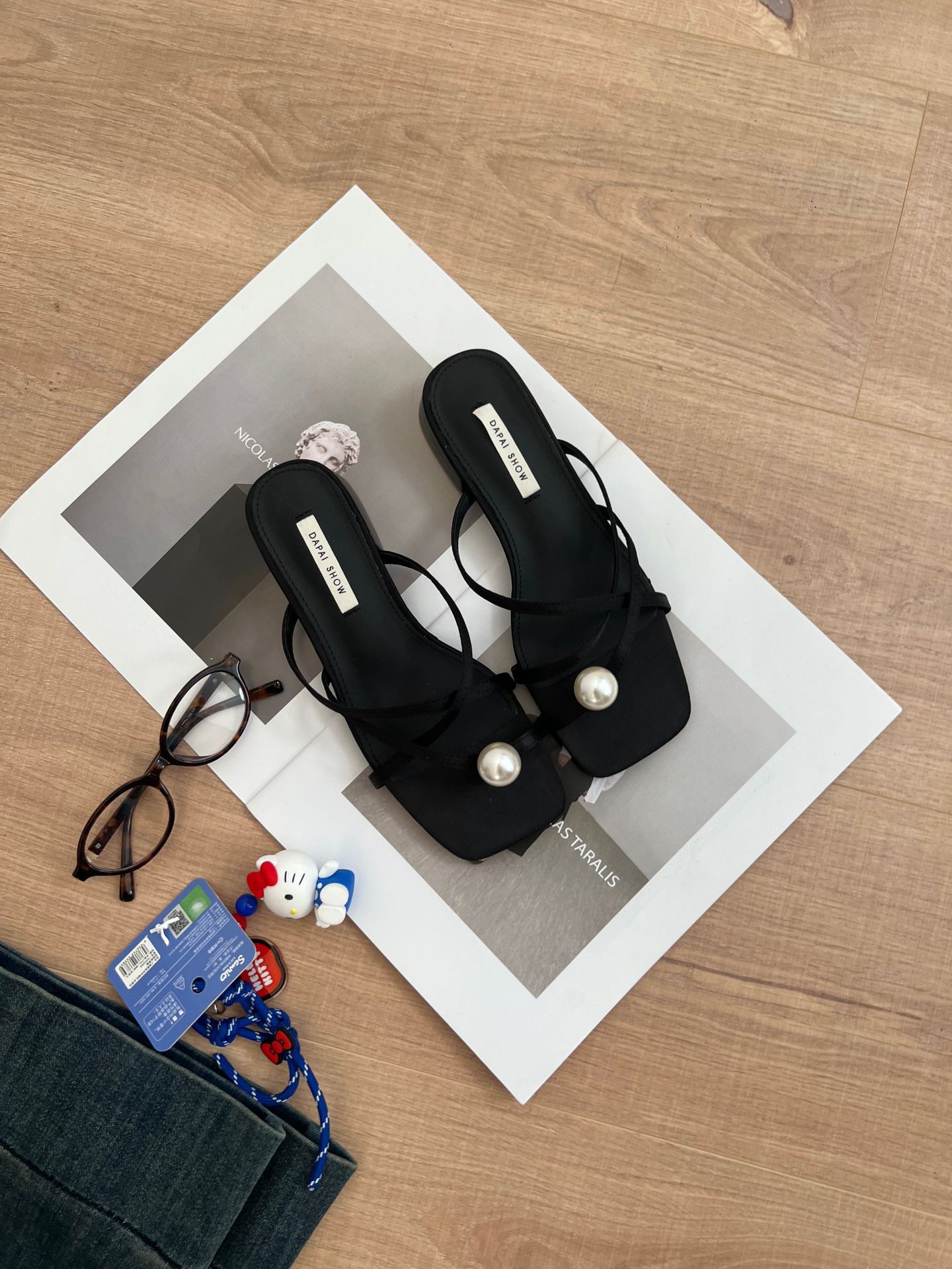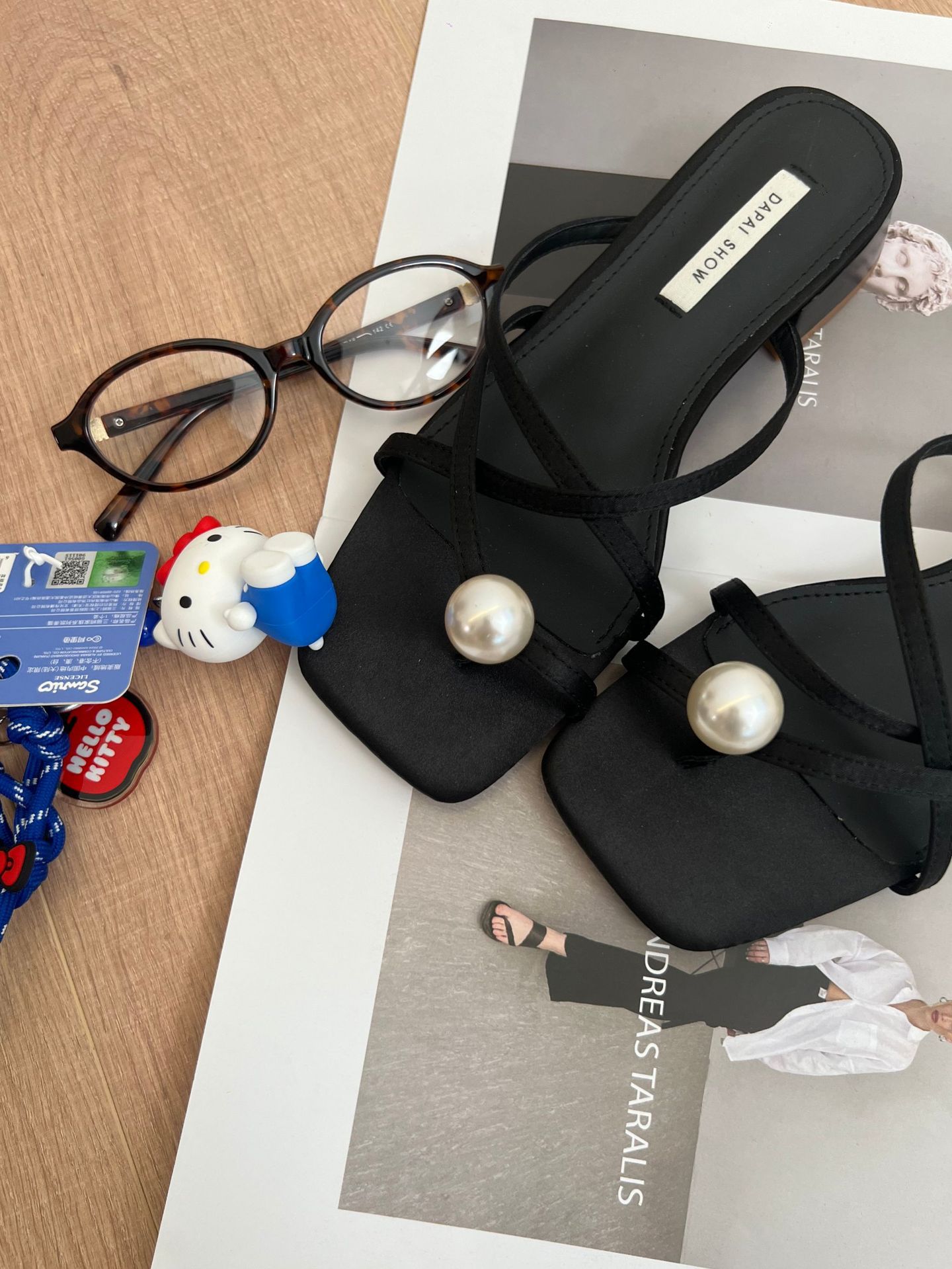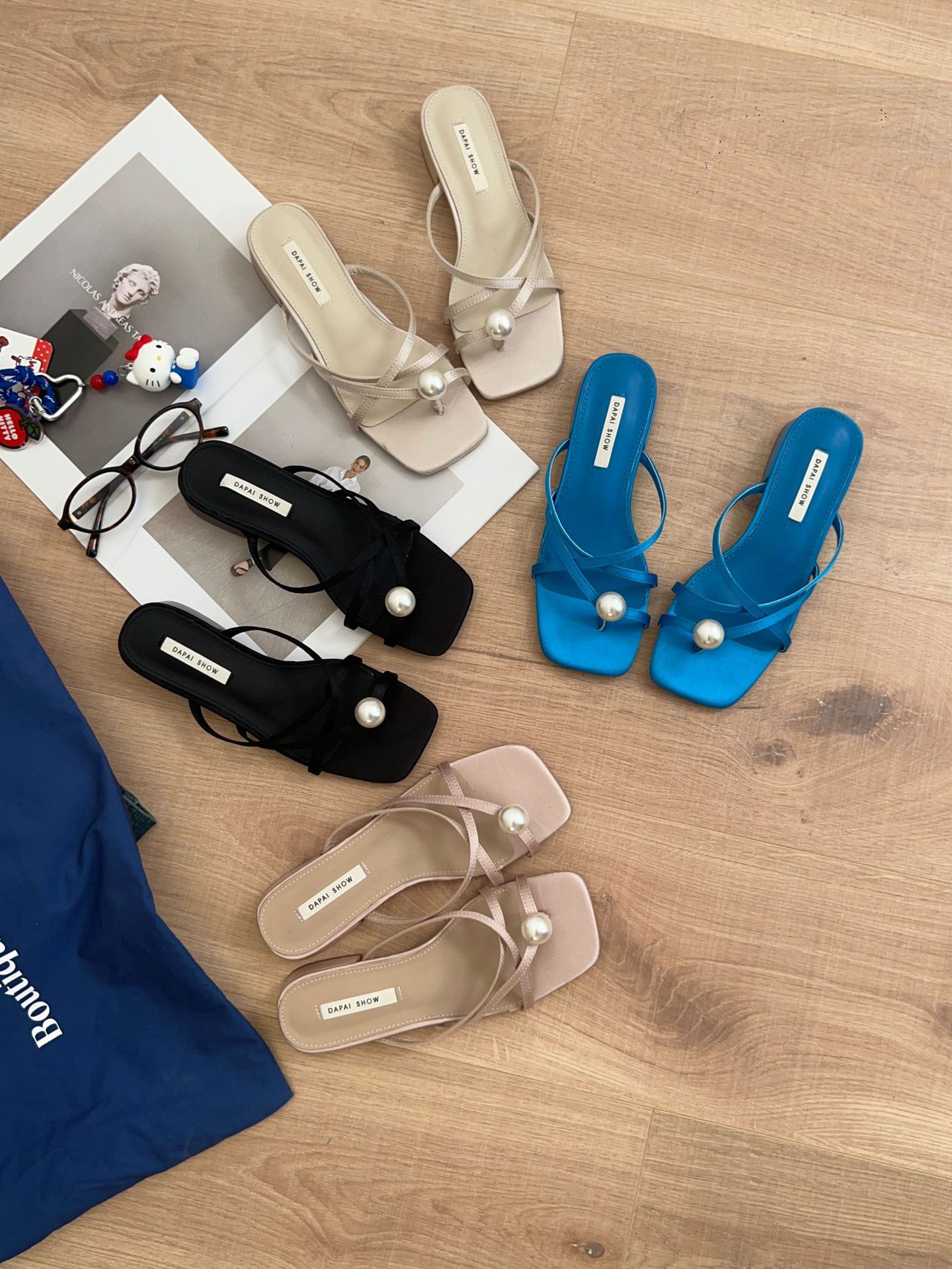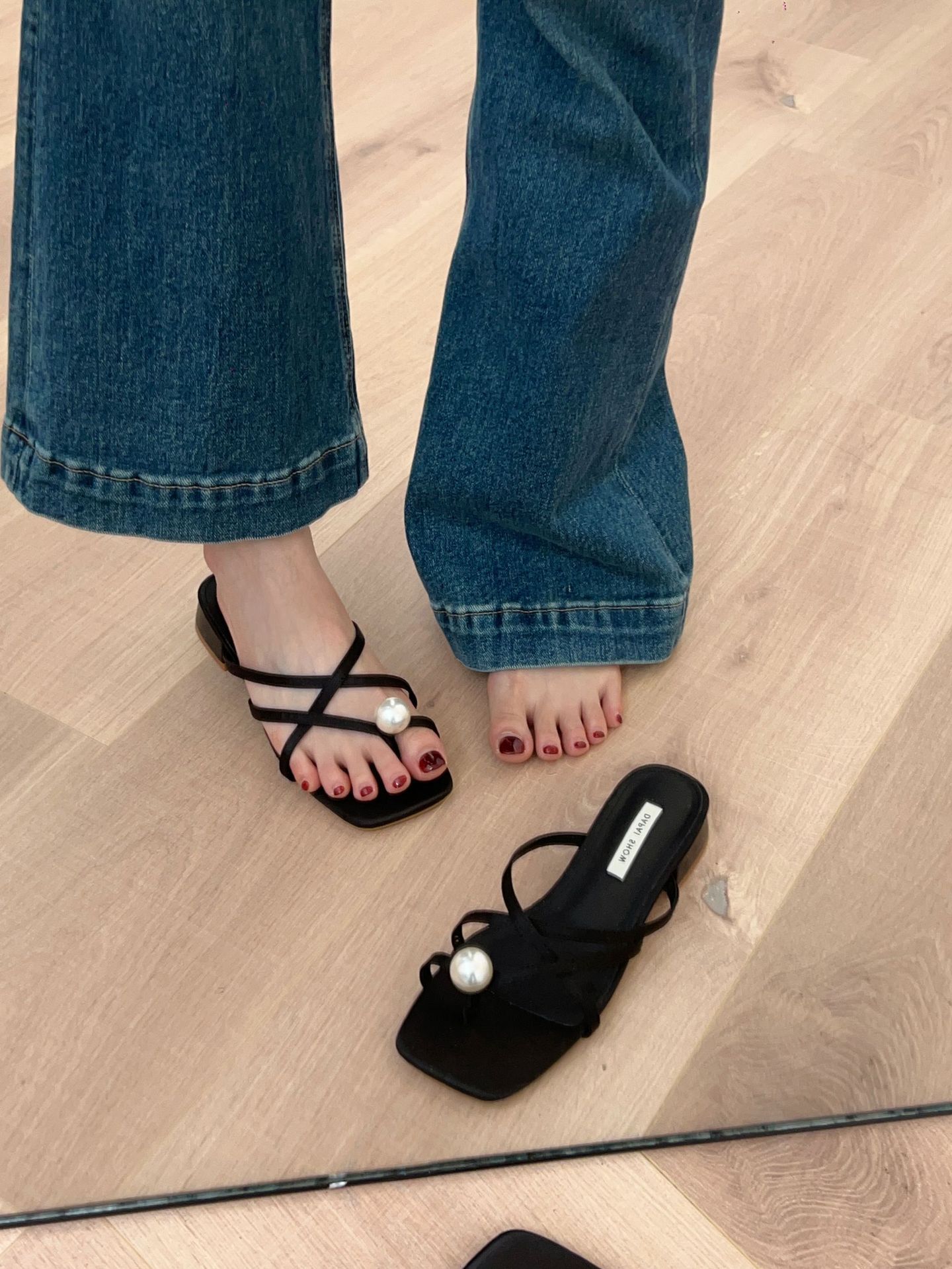 프렌치 이브닝 스타일 스커트, 슬리퍼, 오픈토 스퀘어토 하이힐 샌들, 여름 아우터용 진주 요정 슈즈스토어 가기