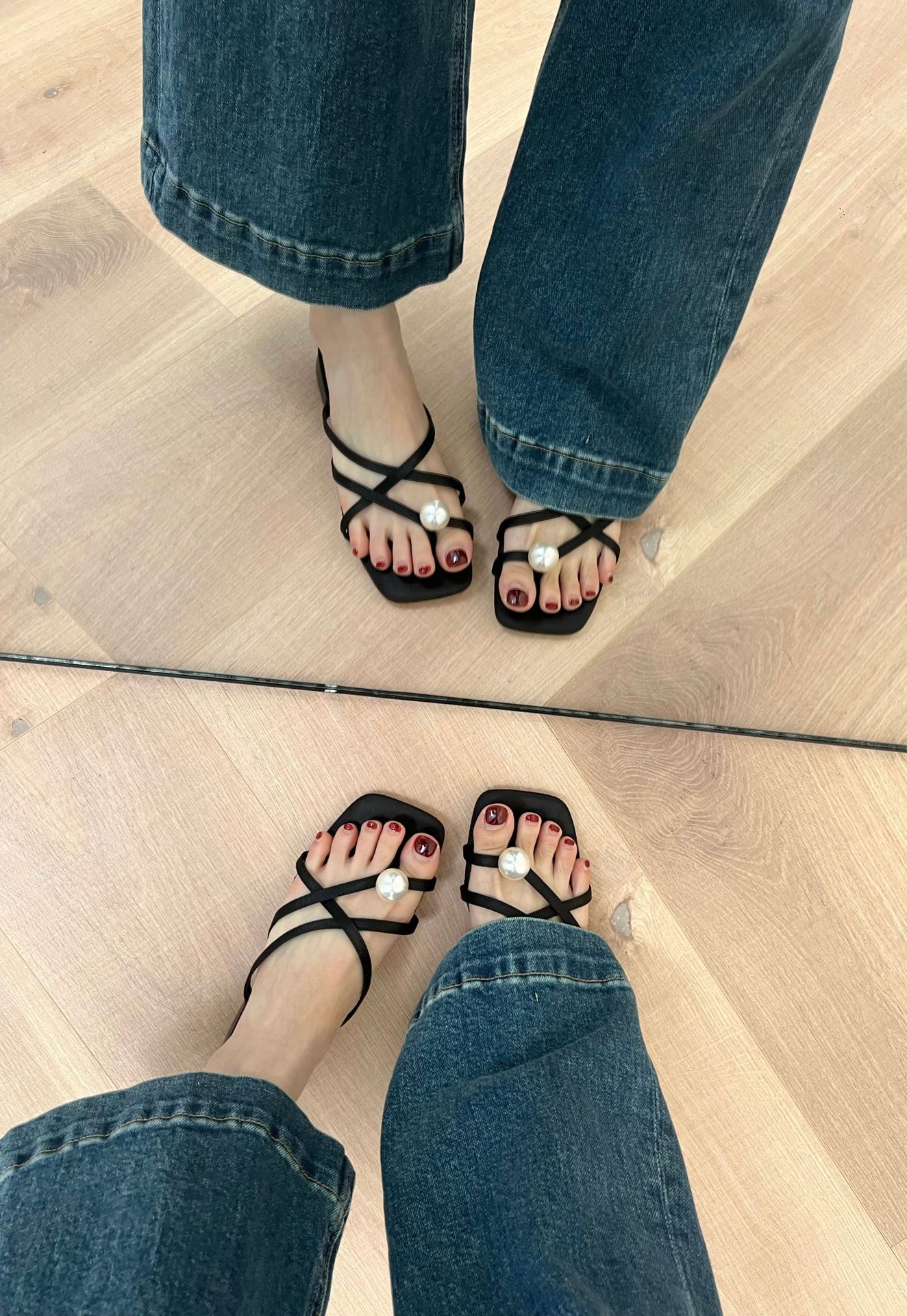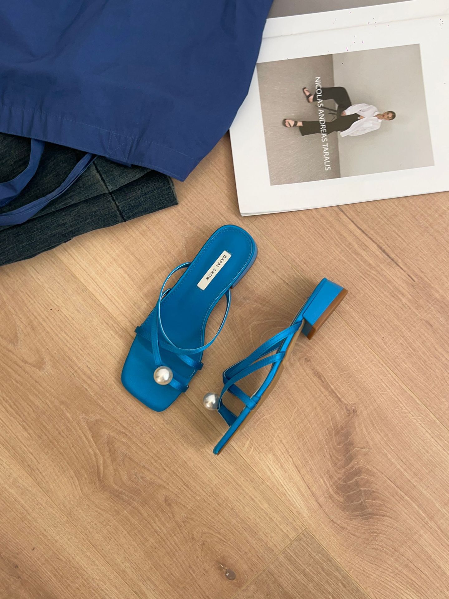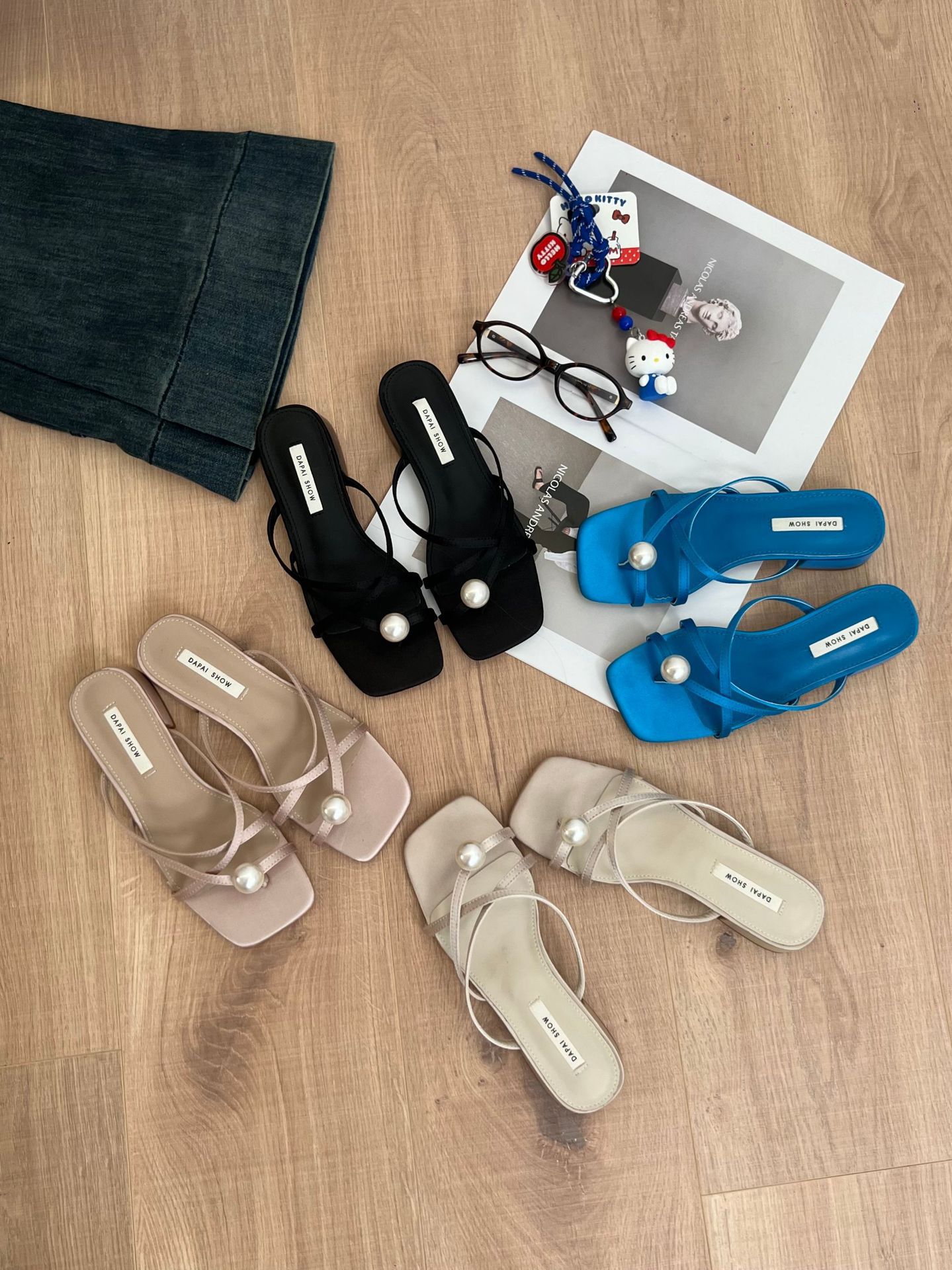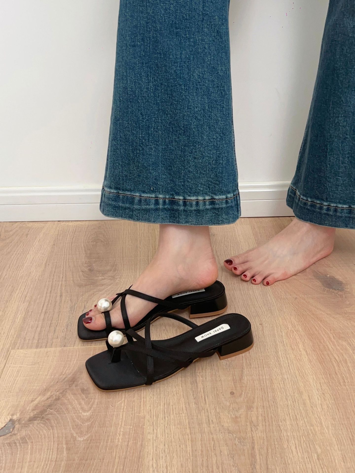 프렌치 이브닝 스타일 스커트, 슬리퍼, 오픈토 스퀘어토 하이힐 샌들, 여름 아우터용 진주 요정 슈즈스토어 가기