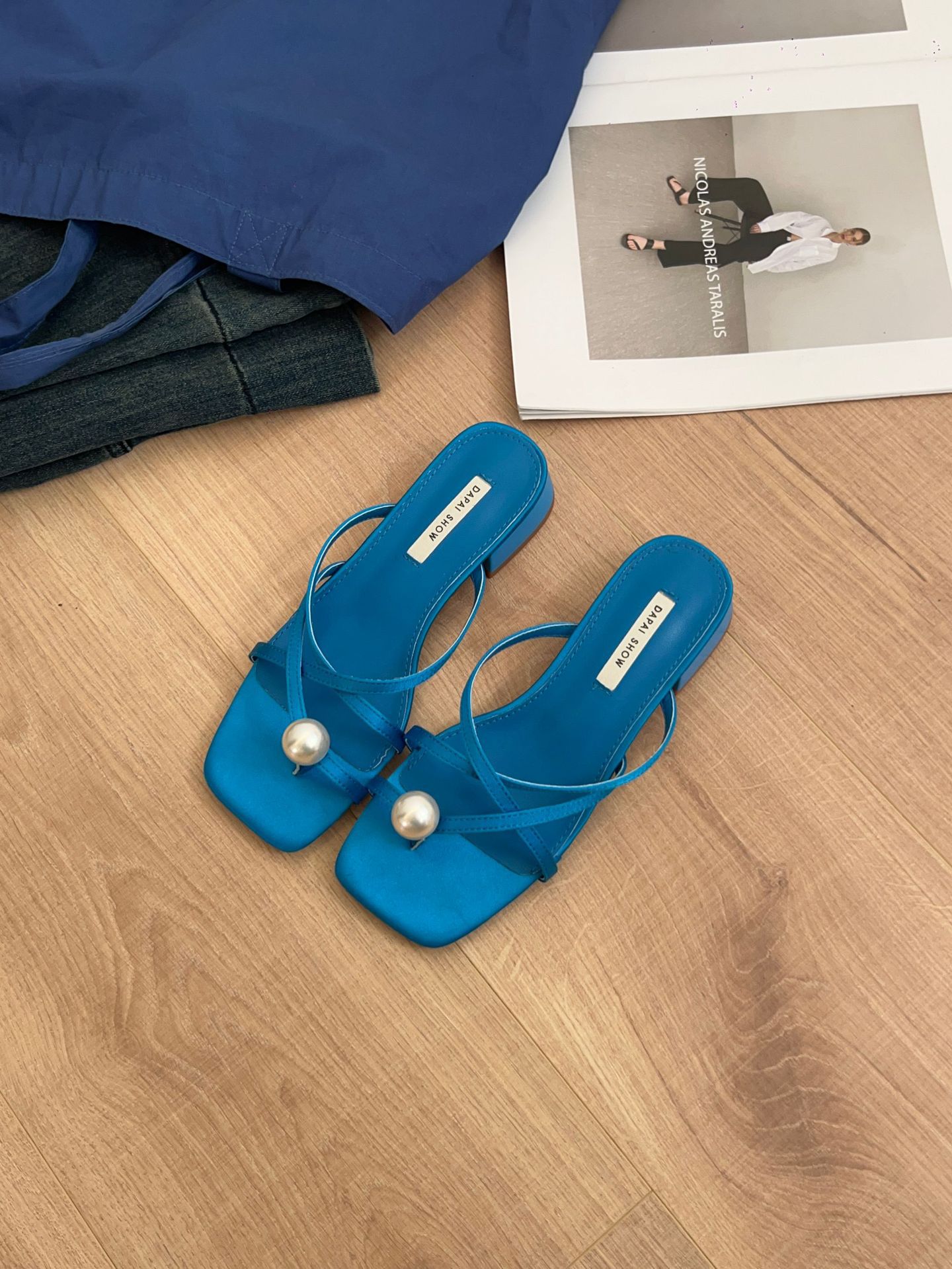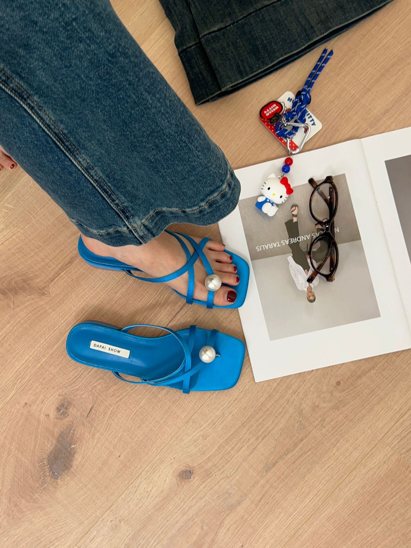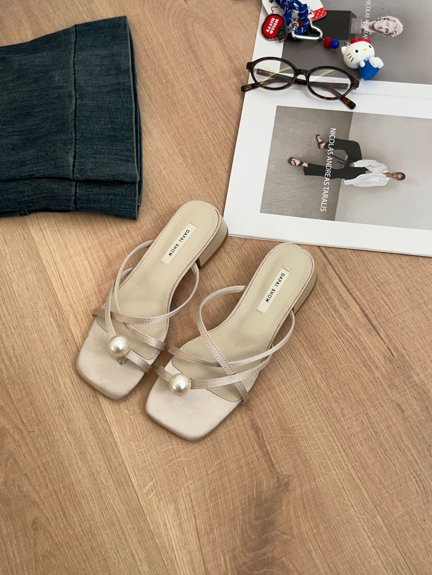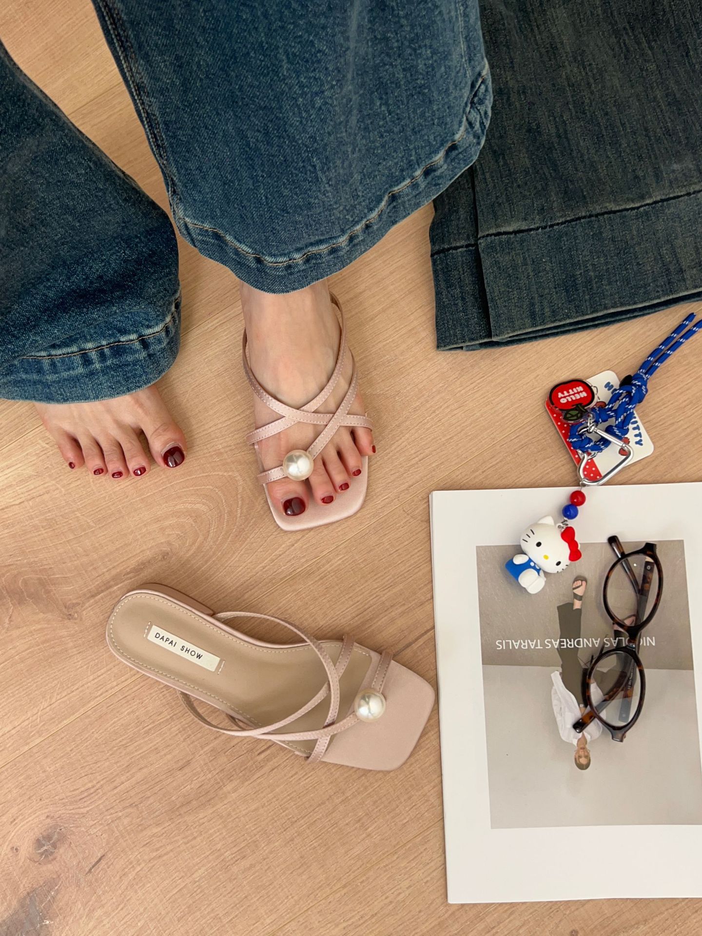 프렌치 이브닝 스타일 스커트, 슬리퍼, 오픈토 스퀘어토 하이힐 샌들, 여름 아우터용 진주 요정 슈즈