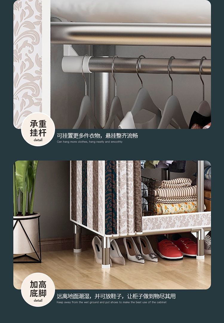 옷장 간단한 천 옷장 강철 파이프 두껍고 강화된 가정용 새로운 옥스포드 패션 천 옷장 공급 공장 공급망스토어 가기