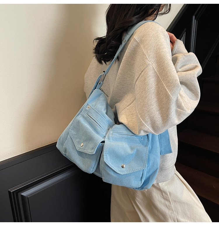 2025 여름 새로운 복고풍 어깨 가방 여성 가방 대용량 크로스 바디 가방 더블 포켓 패션 통근 토트 백