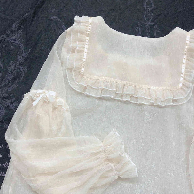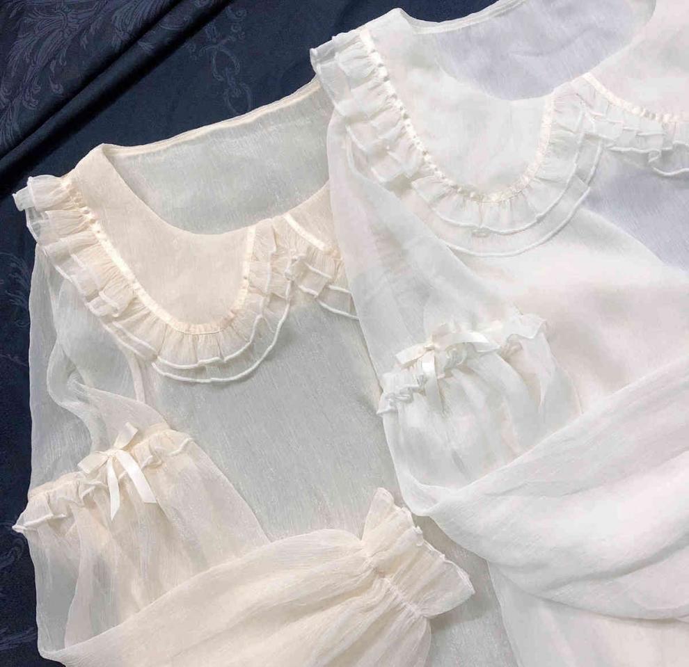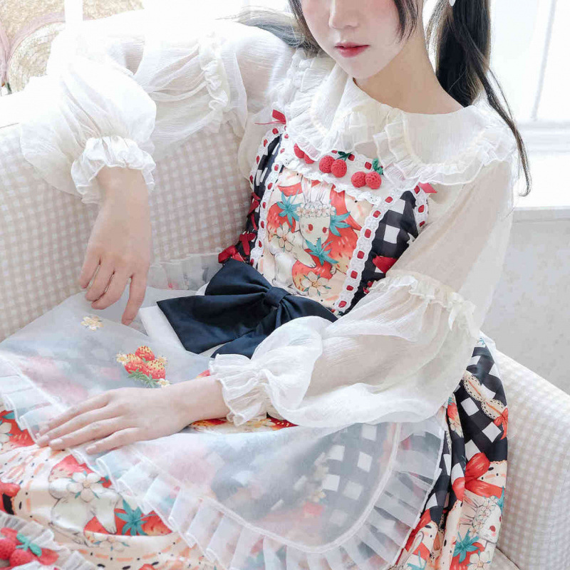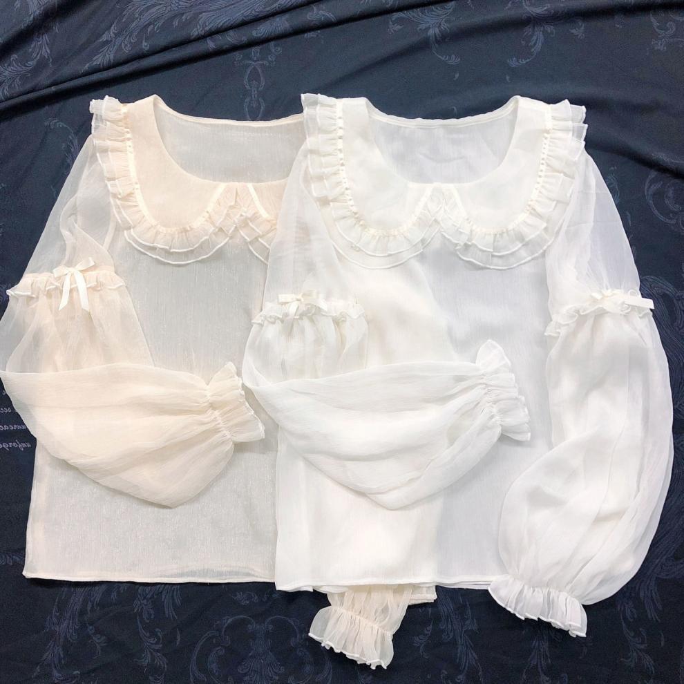 로리타 인테리어 인형 칼라 네이비 칼라 긴팔 로리타 쉬폰 셔츠