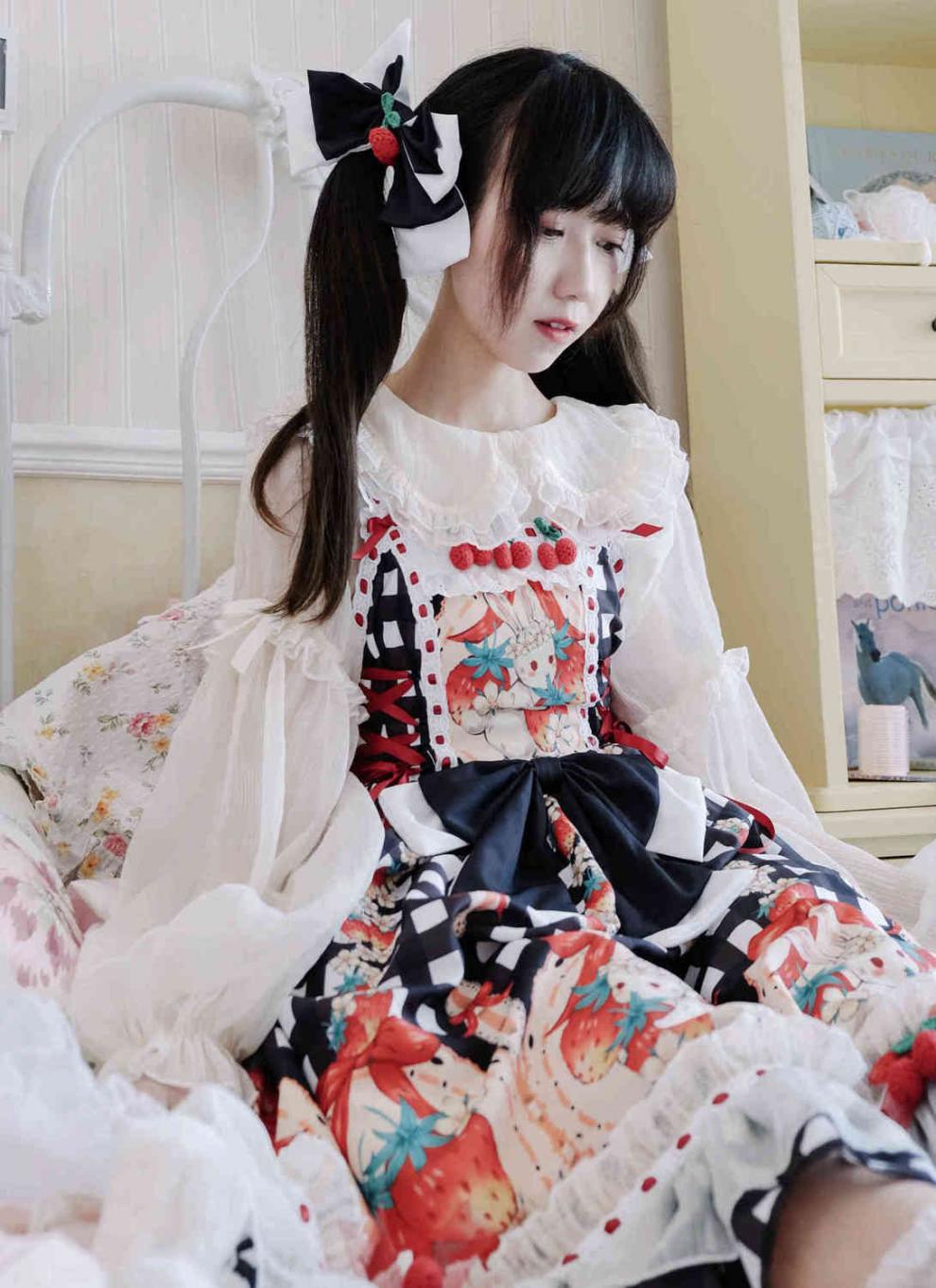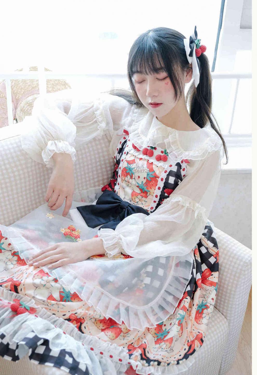 로리타 인테리어 인형 칼라 네이비 칼라 긴팔 로리타 쉬폰 셔츠스토어 가기