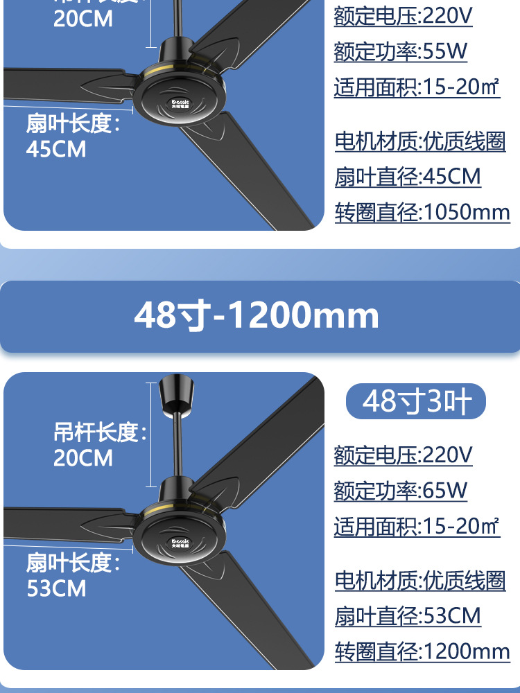 • 48inch —65W 세잎 [구리선 무한] 흑색 구리 코어 모터