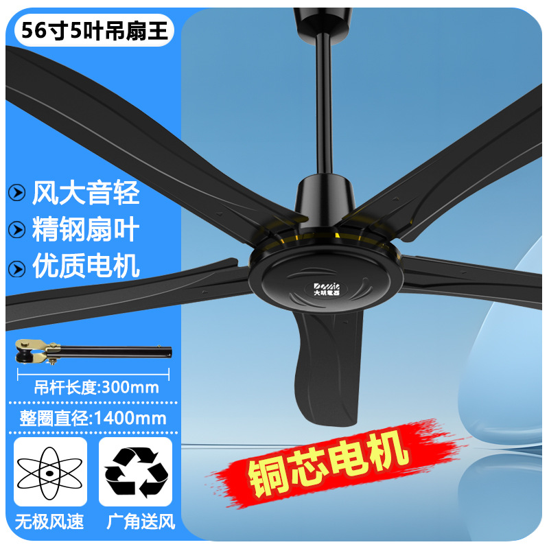 • 업그레이드된 행잉 킹 - 56inch - 100W 다섯 잎 [구리선 다섯 번째 기어] 검정색 - 초강력 구리 코어 모터