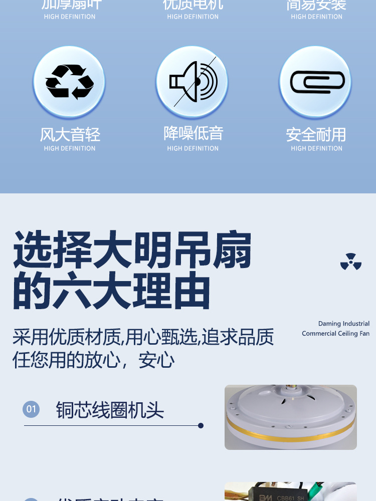 천장 팬 팬 전기 팬 순수 구리 코어 천장 팬 학교 공장 용 전기 팬 100W 가정용 56inch 산업용 베이스