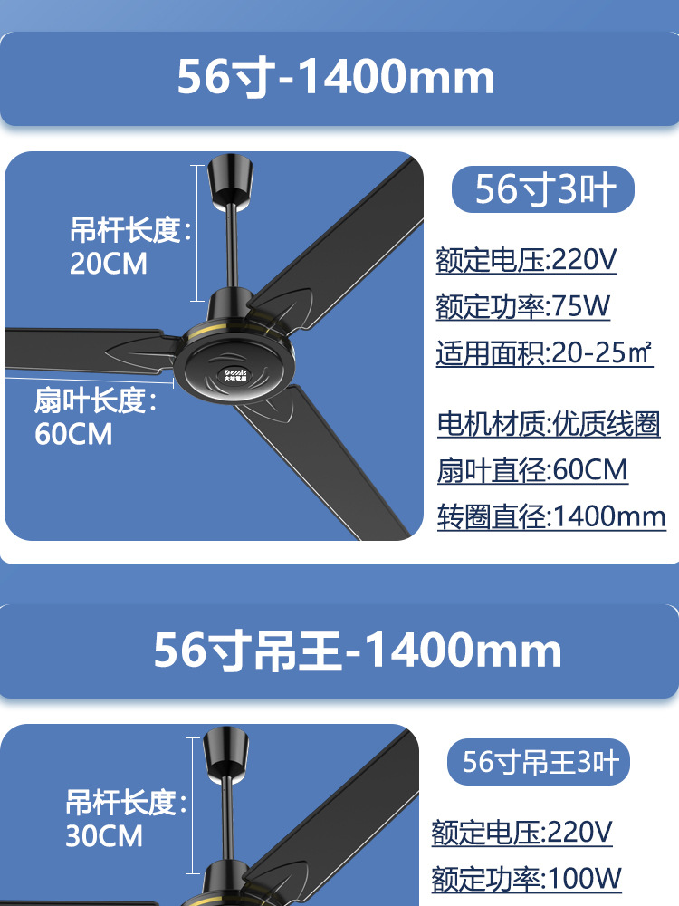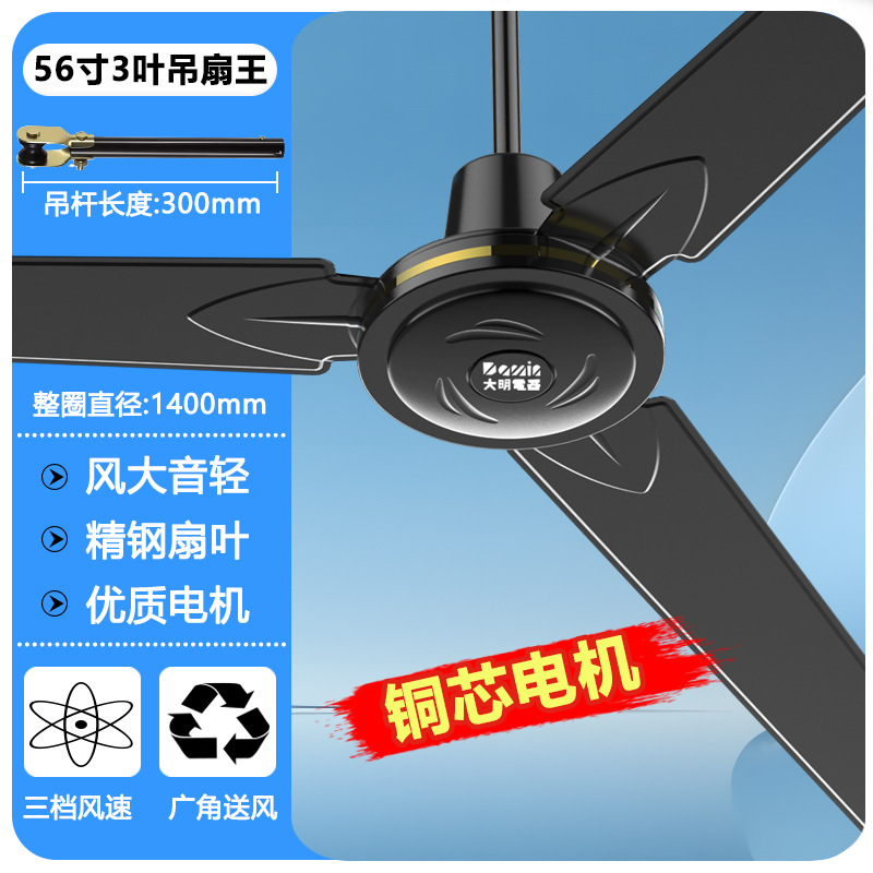 • 업그레이드된 행잉 킹 - 56inch - 100W 다섯 잎 [구리선 세 번째 기어] 검정색 - 초강력 구리 코어 모터