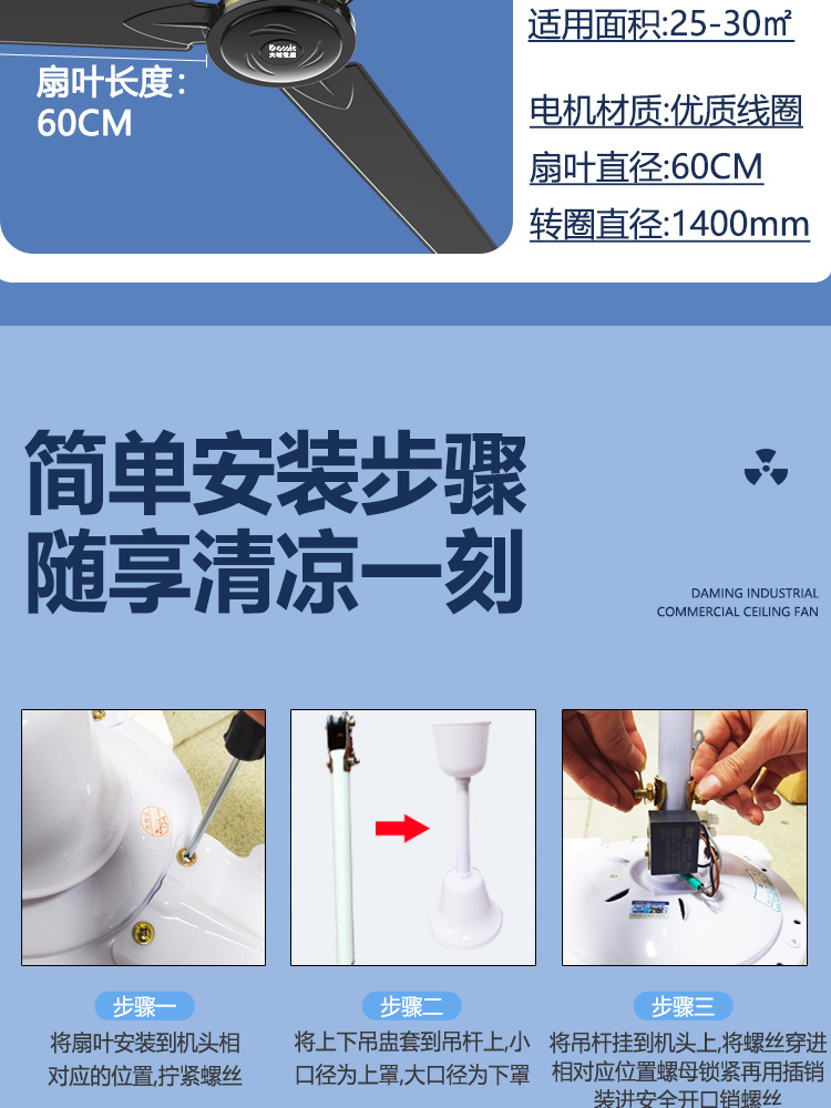 • 56inch —75W 세잎 [구리선 3단] 흑색 구리 코어 모터
