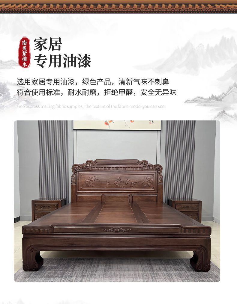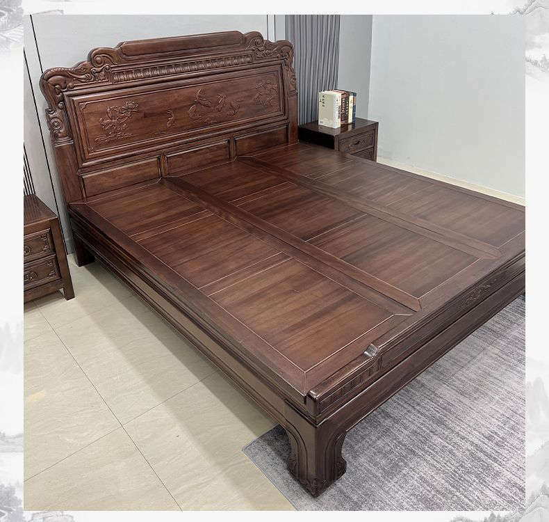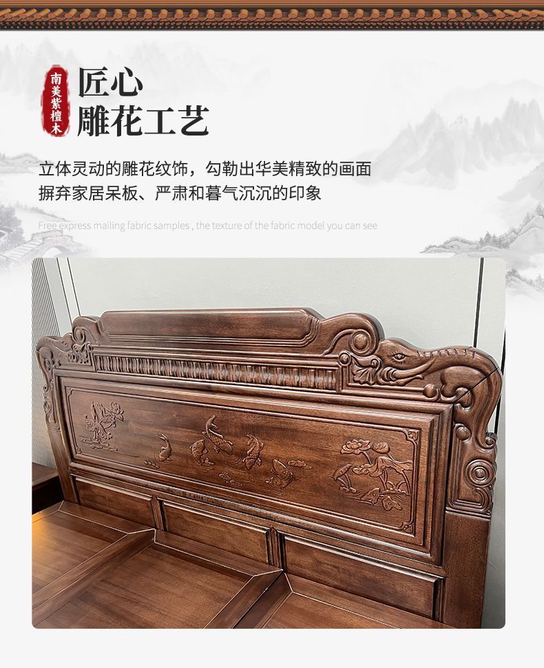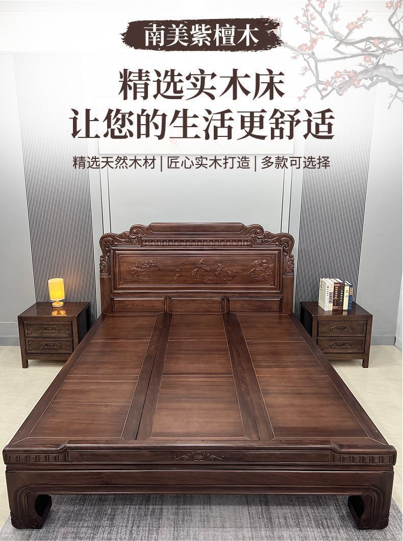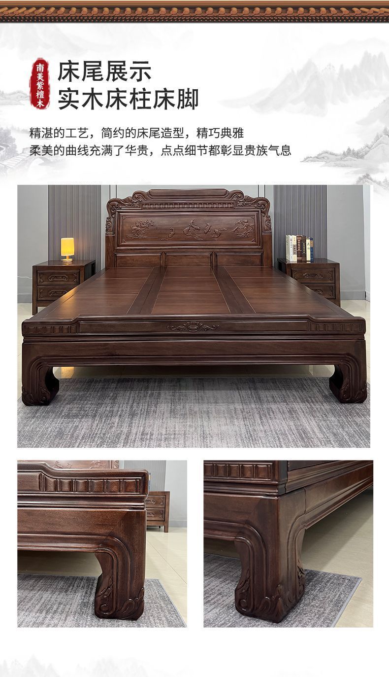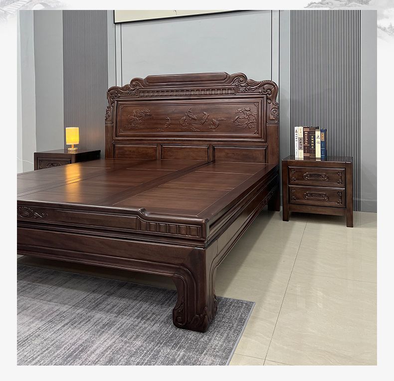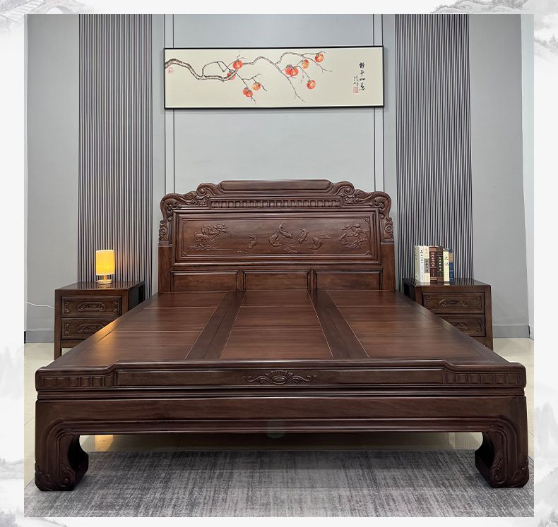매년 물고기가 있는 남미 로즈우드 조각 1.8m 대형 침대 경목 침대 웨딩 침대 목재 침대 1.8m