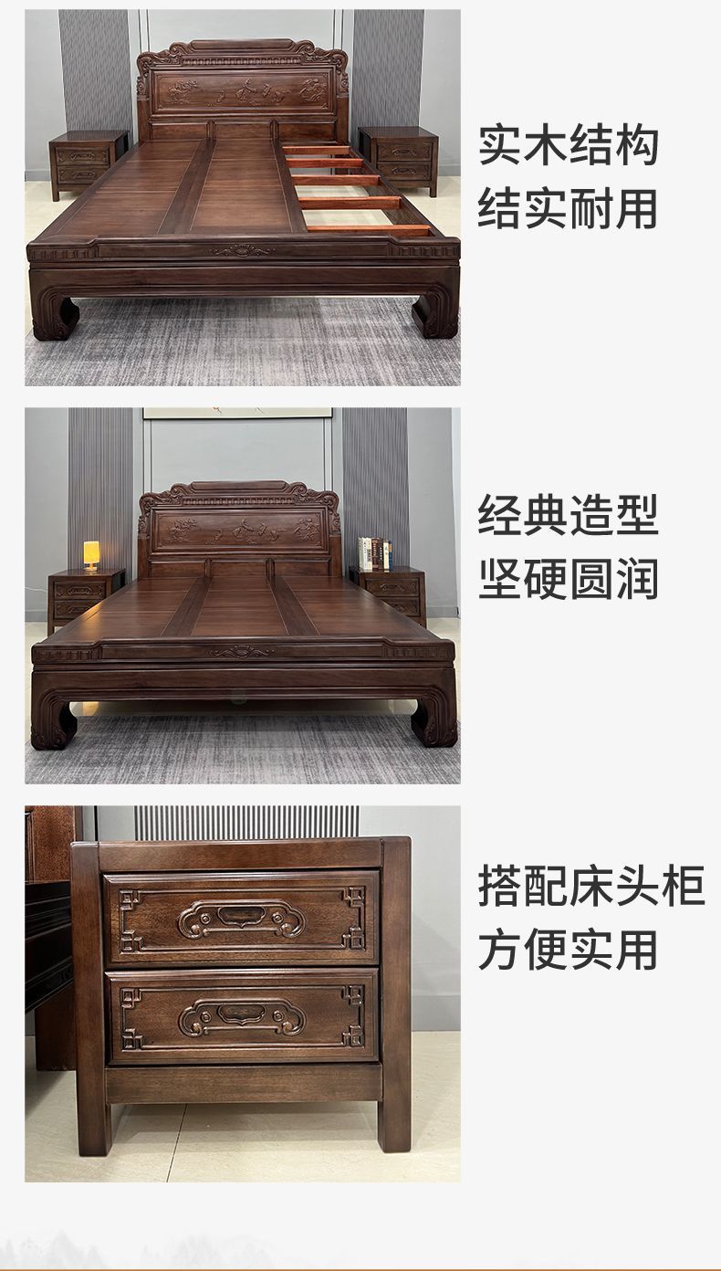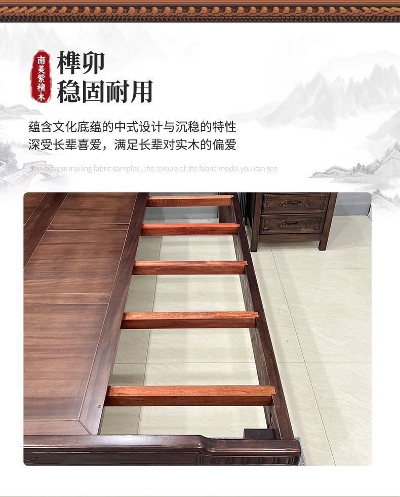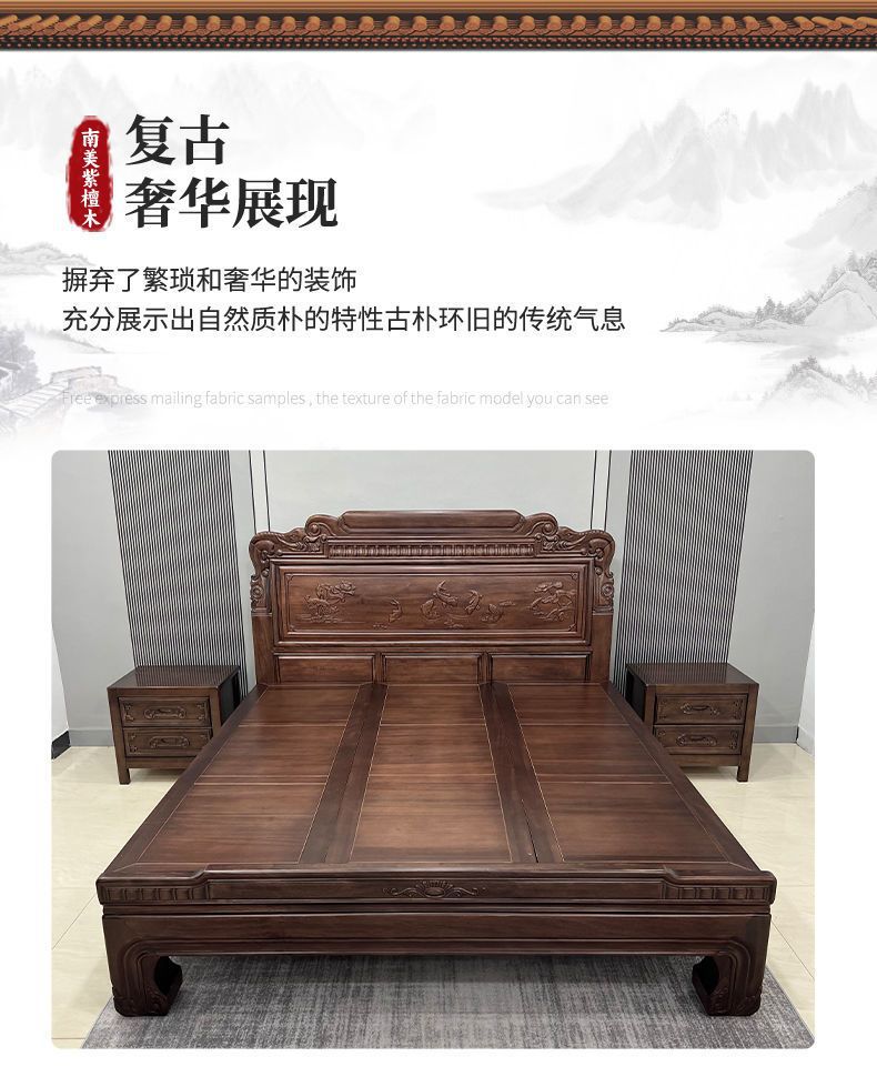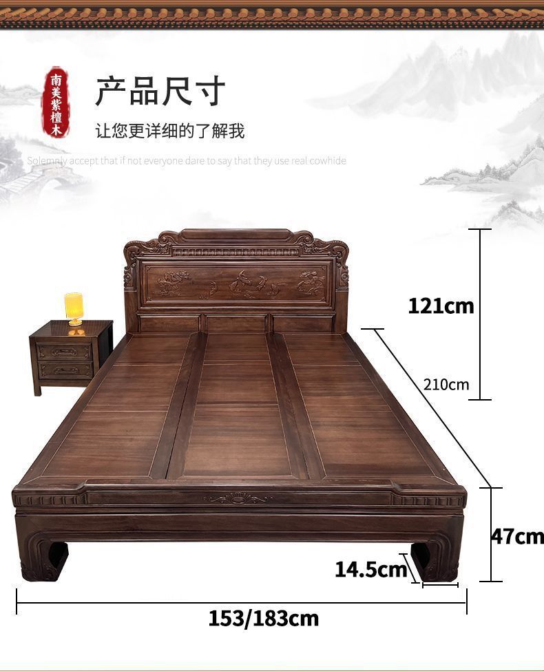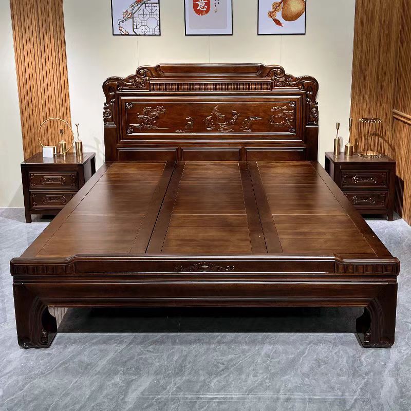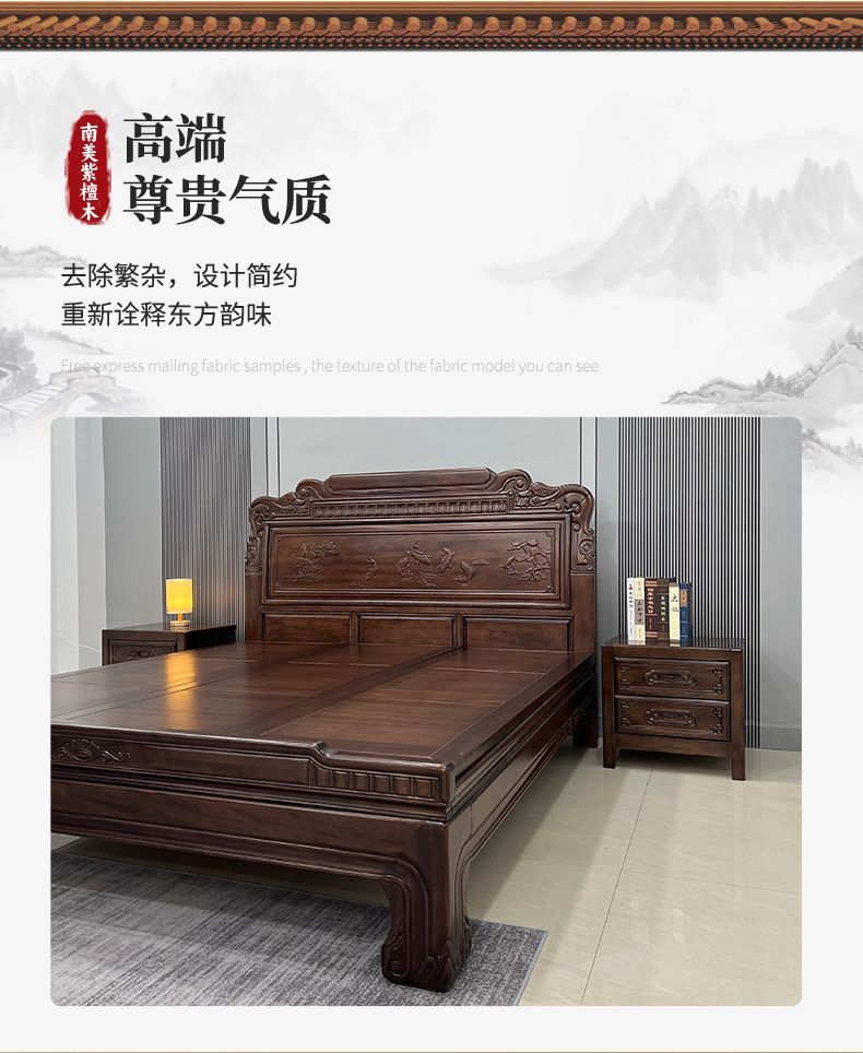 매년 물고기가 있는 남미 로즈우드 조각 1.8m 대형 침대 경목 침대 웨딩 침대 목재 침대 1.8m