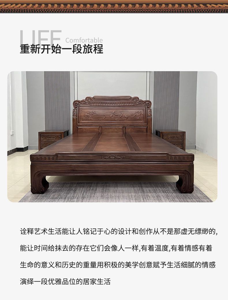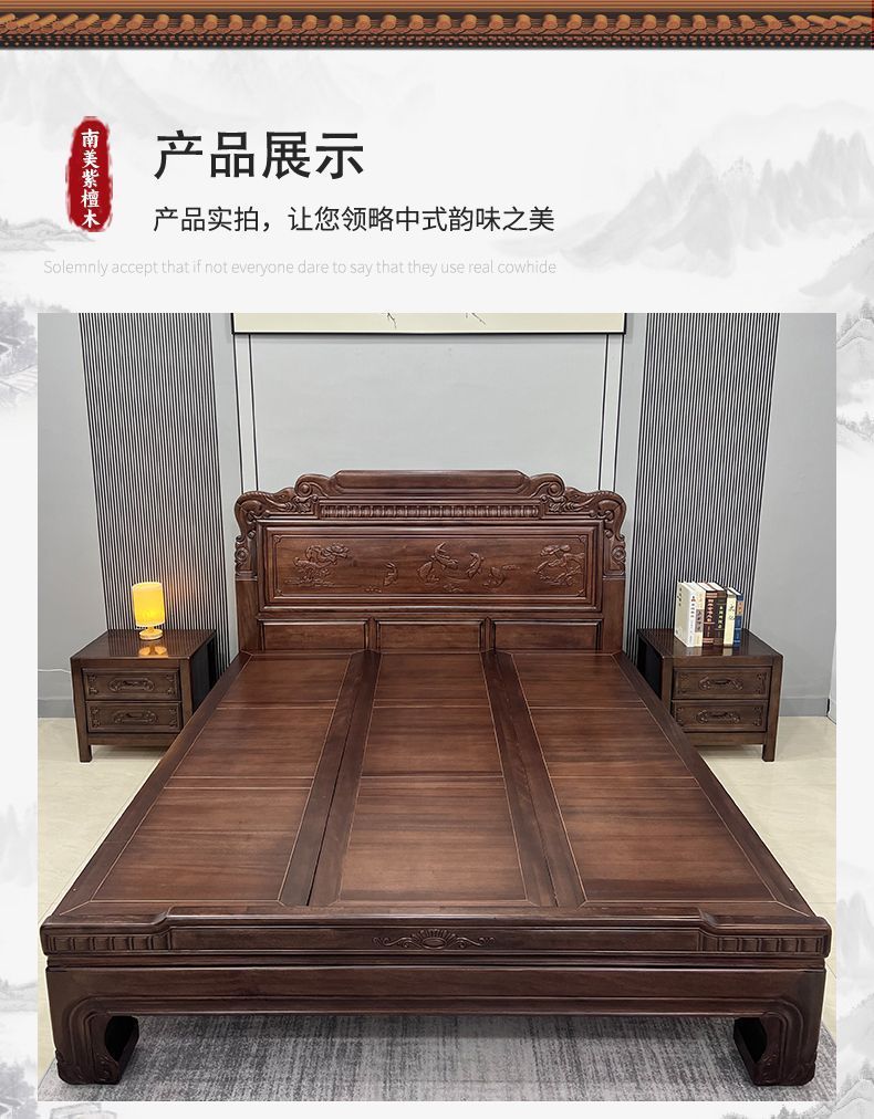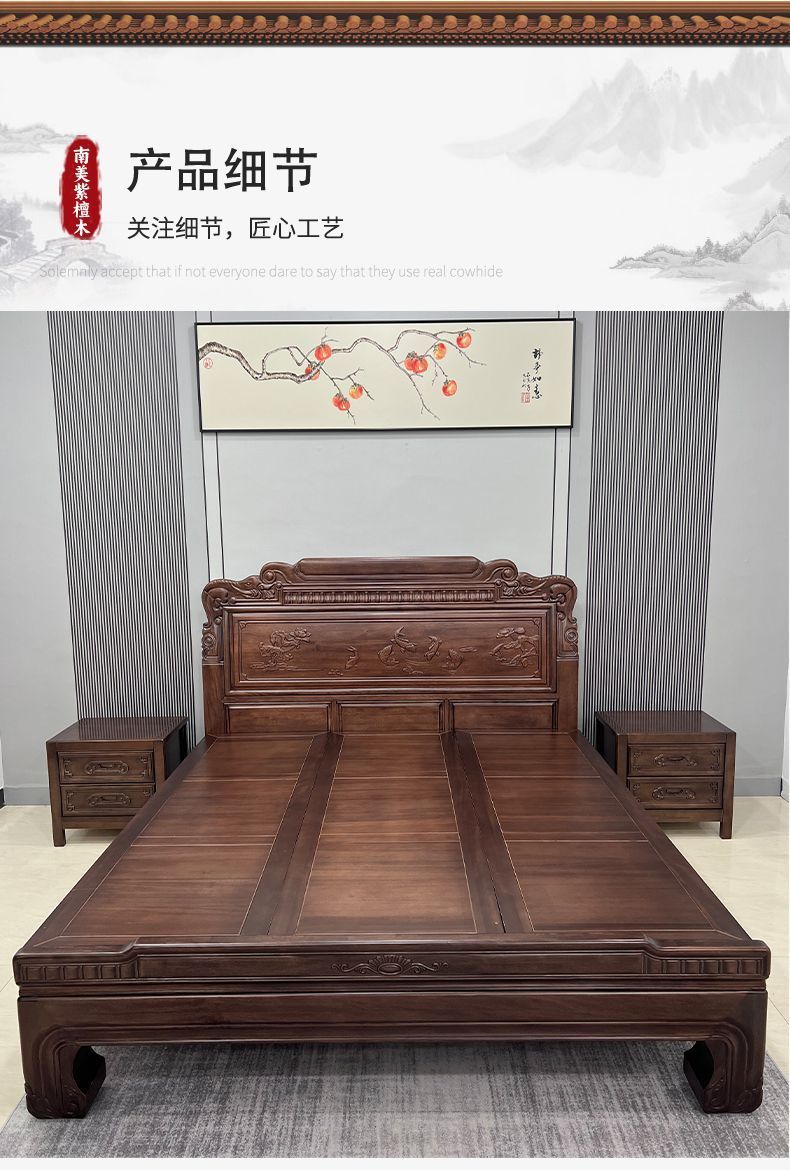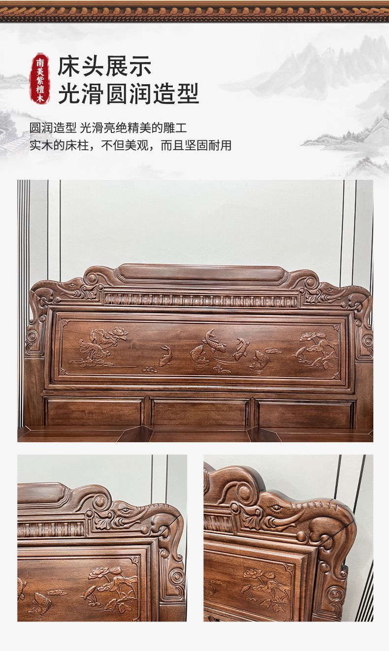 매년 물고기가 있는 남미 로즈우드 조각 1.8m 대형 침대 경목 침대 웨딩 침대 목재 침대 1.8m스토어 가기