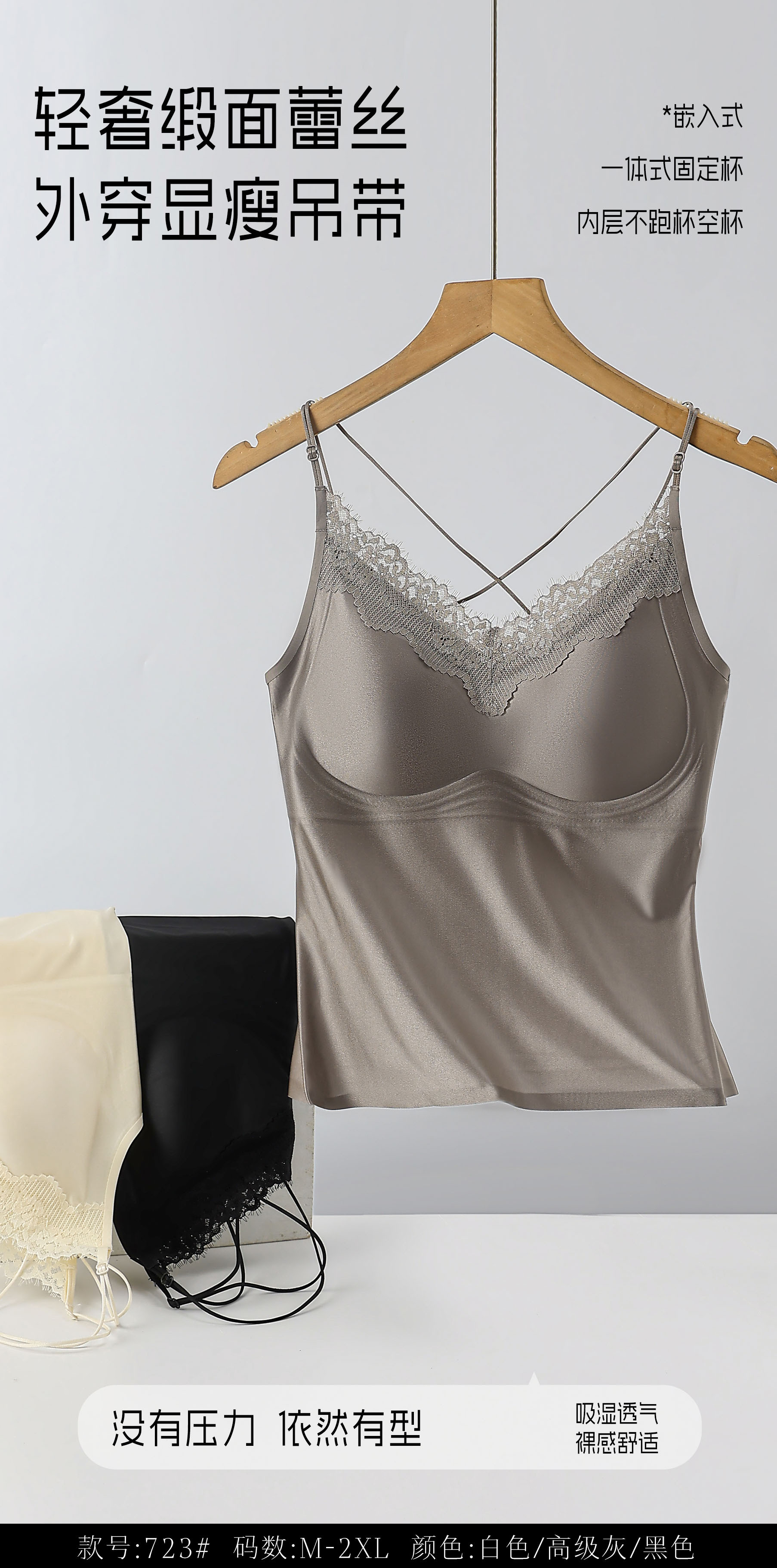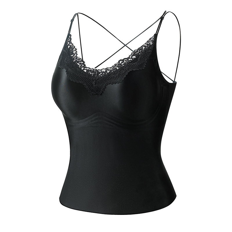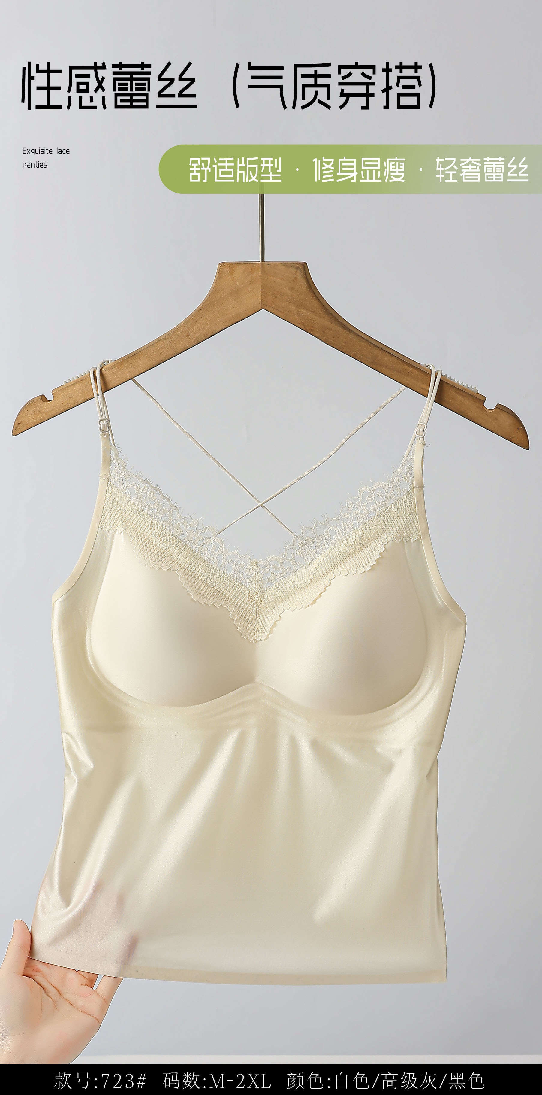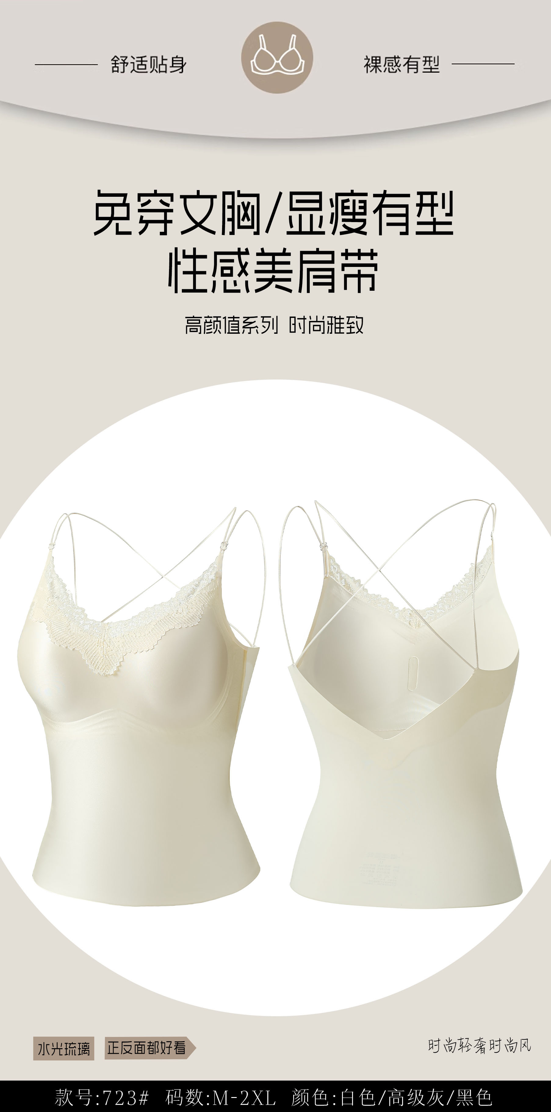 레이스 서스펜더, 가슴 패드가 있는 심리스 쿨링 올인원 뷰티 백 캐미솔로 밖에서도 착용 가능하며 노출 방지 및 브라 착용이 필요하지 않습니다.