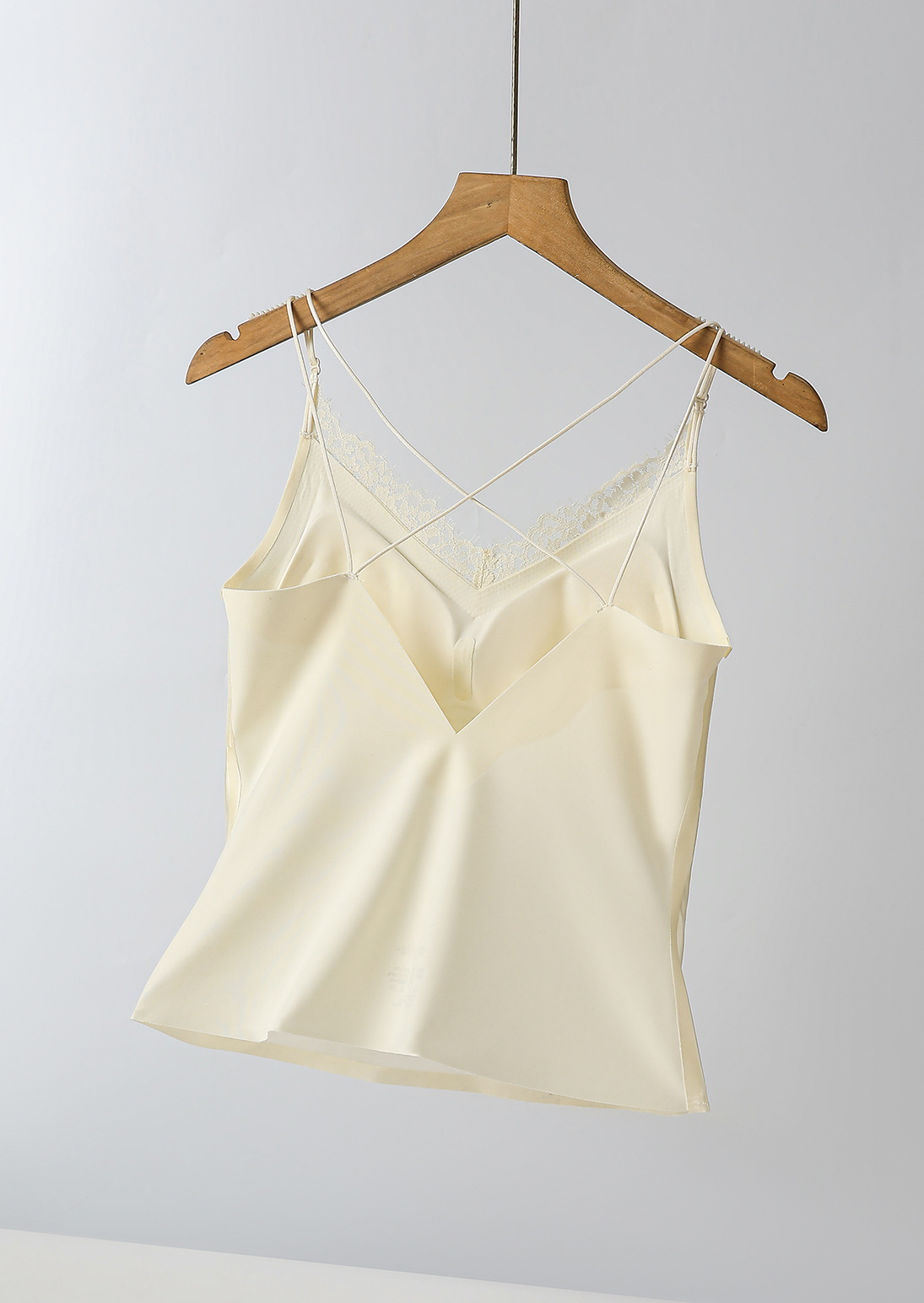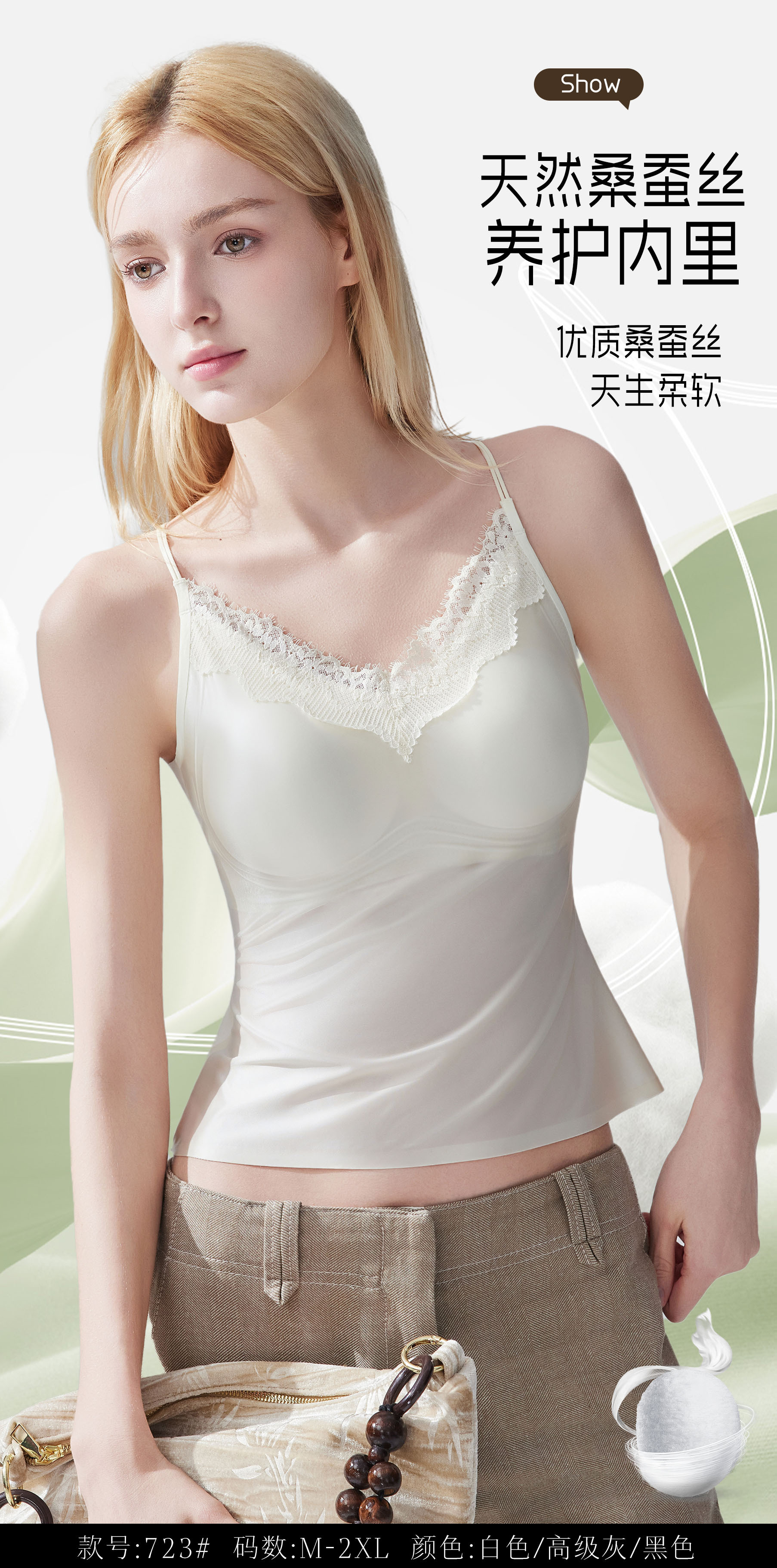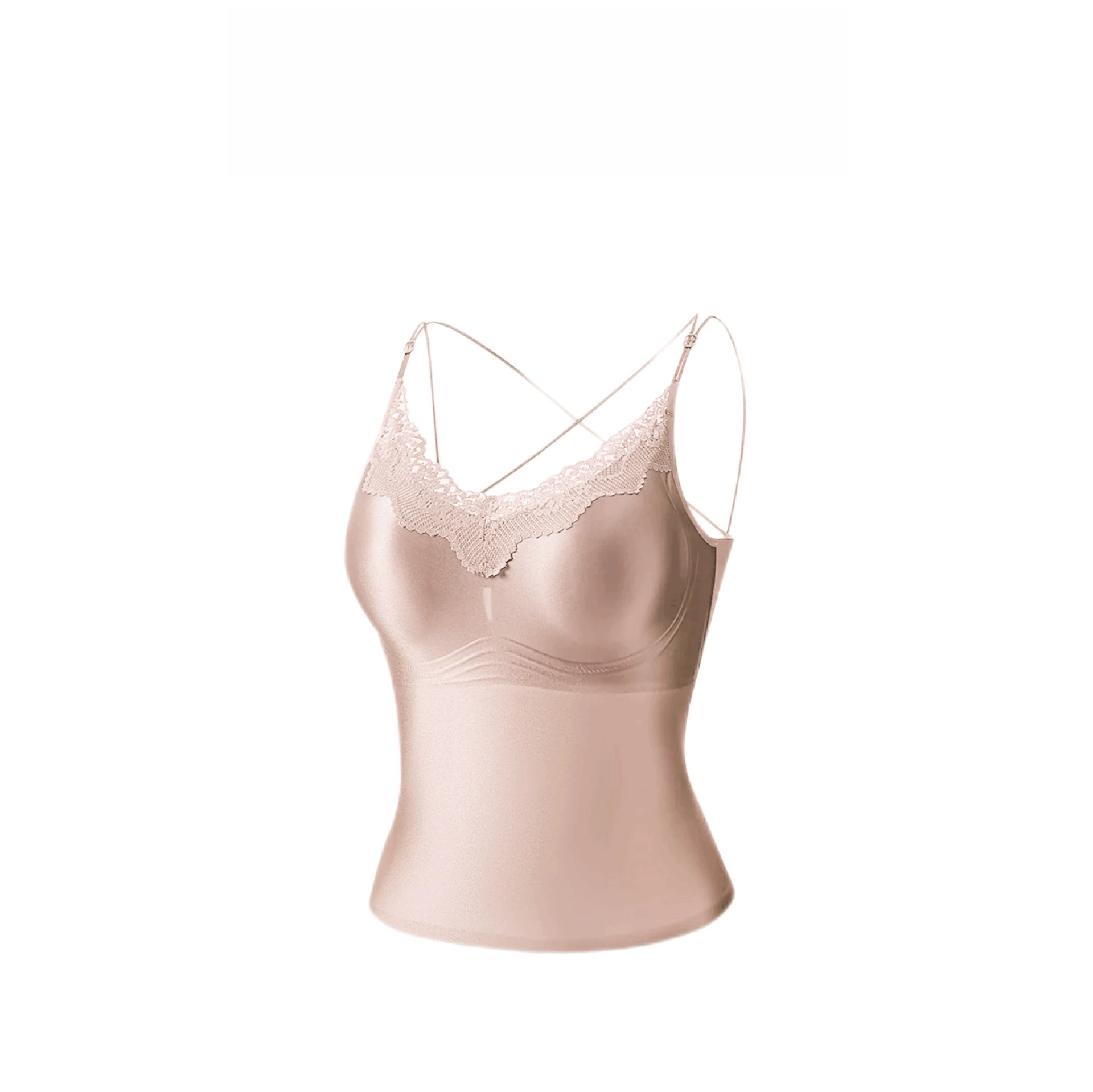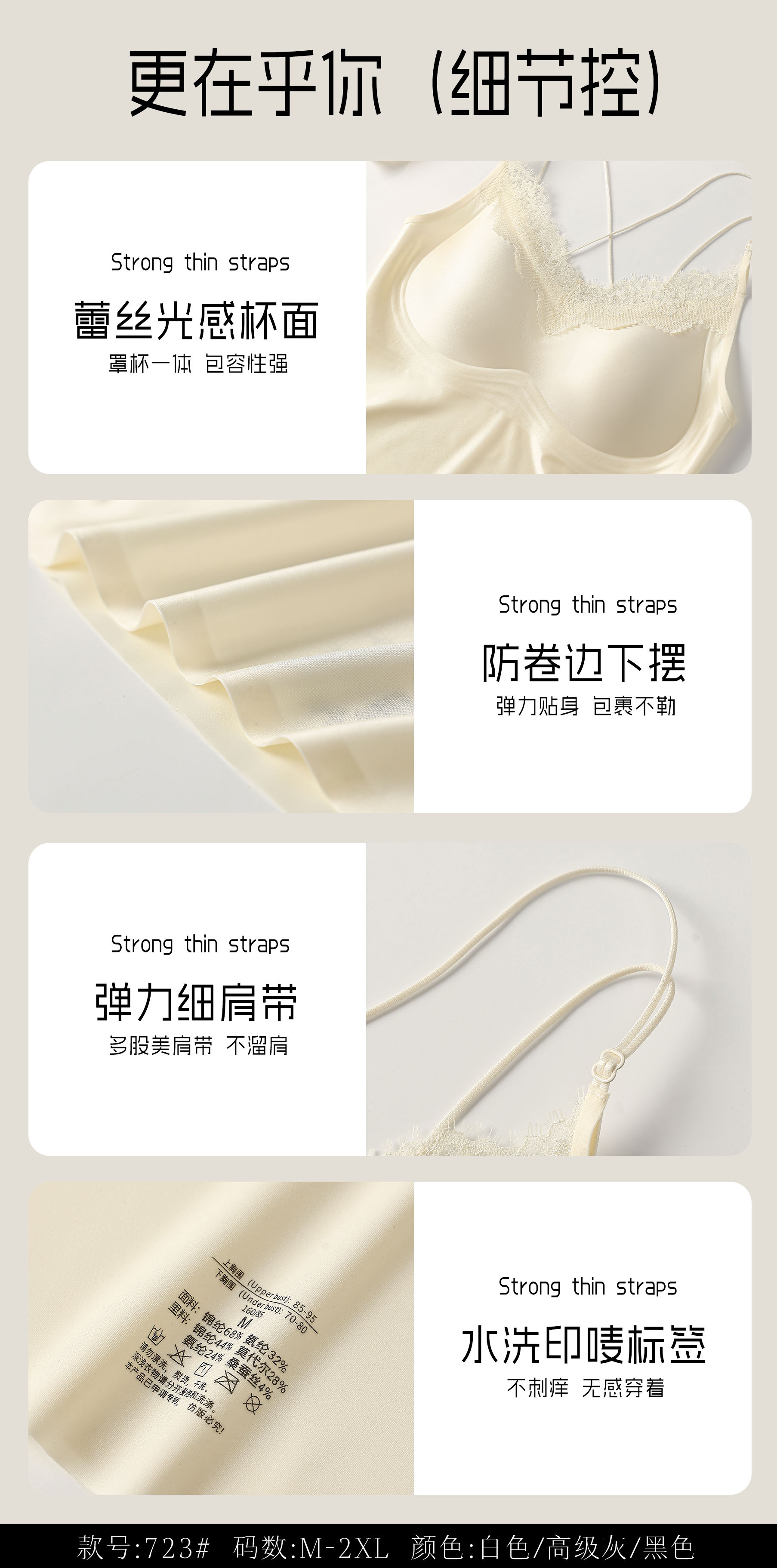 레이스 서스펜더, 가슴 패드가 있는 심리스 쿨링 올인원 뷰티 백 캐미솔로 밖에서도 착용 가능하며 노출 방지 및 브라 착용이 필요하지 않습니다.