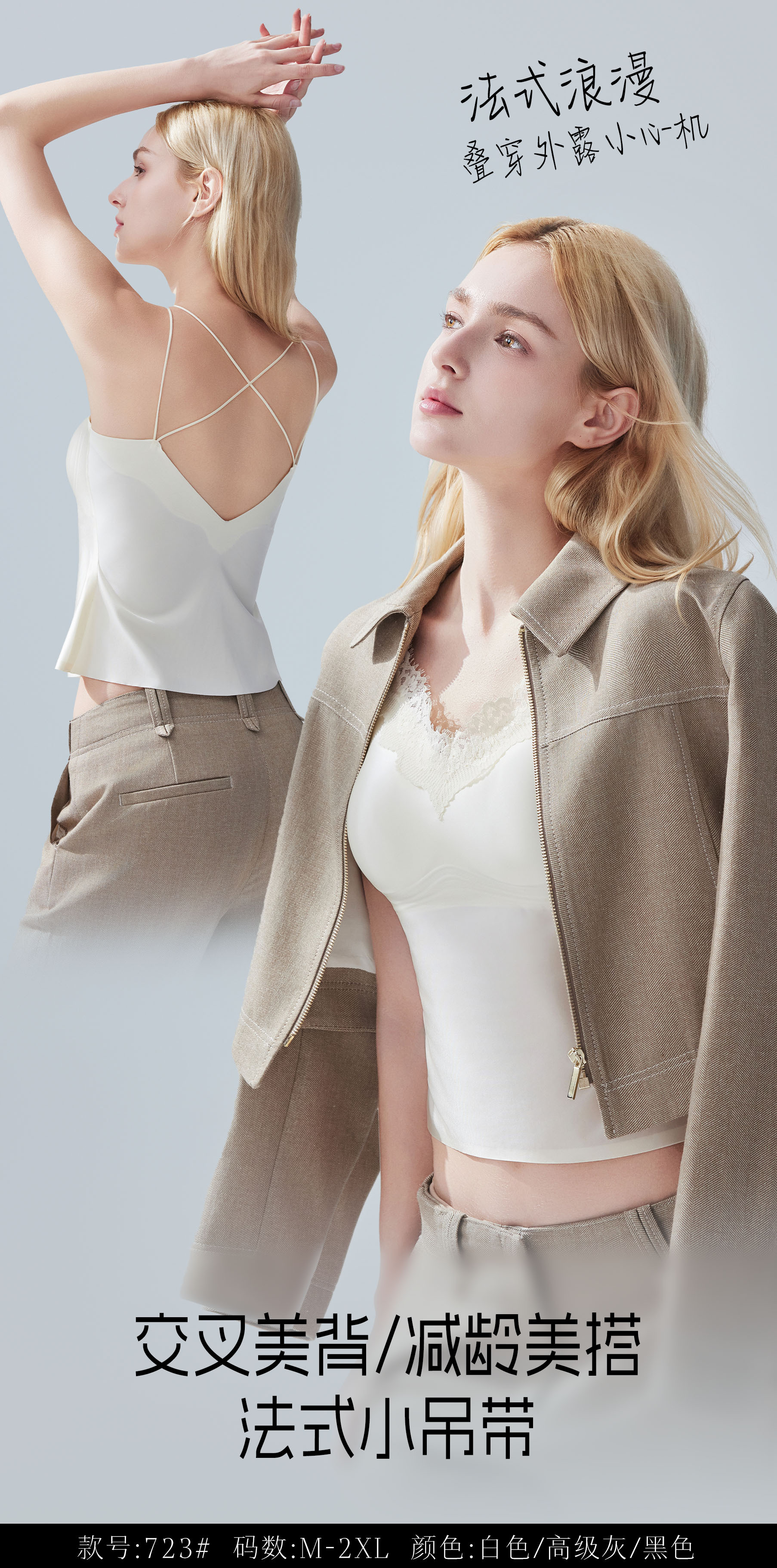 레이스 서스펜더, 가슴 패드가 있는 심리스 쿨링 올인원 뷰티 백 캐미솔로 밖에서도 착용 가능하며 노출 방지 및 브라 착용이 필요하지 않습니다.스토어 가기