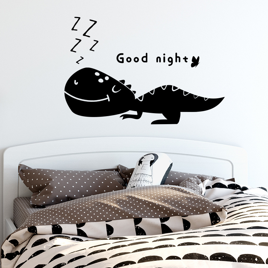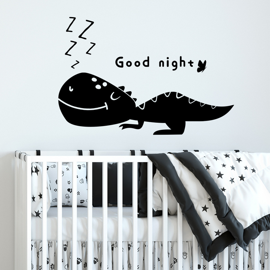 BR3900E "Good Night" 만화 공룡 검은 실루엣 자체 접착 벽 스티커 어린이 방 장식 스티커스토어 가기