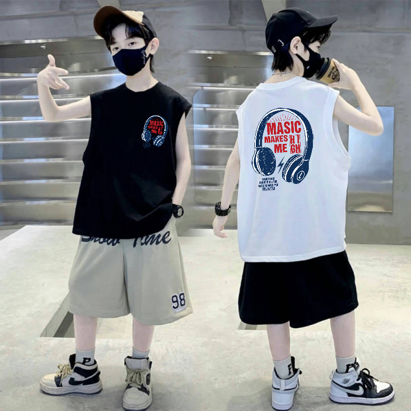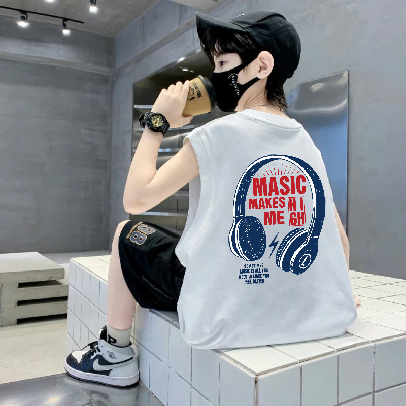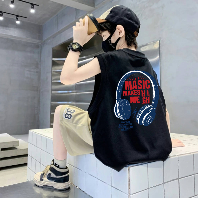 소년 순면 어린이 조끼 여름 얇은 중대형 어린이 스포츠 및 레저 민소매 티셔츠 소년을위한 느슨한 라운드 넥 조끼