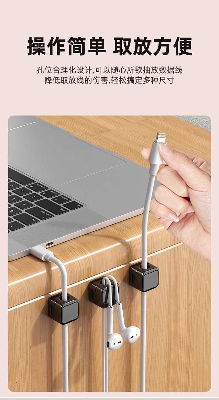 새로운 자기 케이블 관리자 데이터 케이블 벽걸이 형 보관함 휴대 전화 충전 케이블 고정 데스크탑 후크 펀치 프리 버클